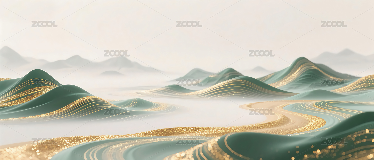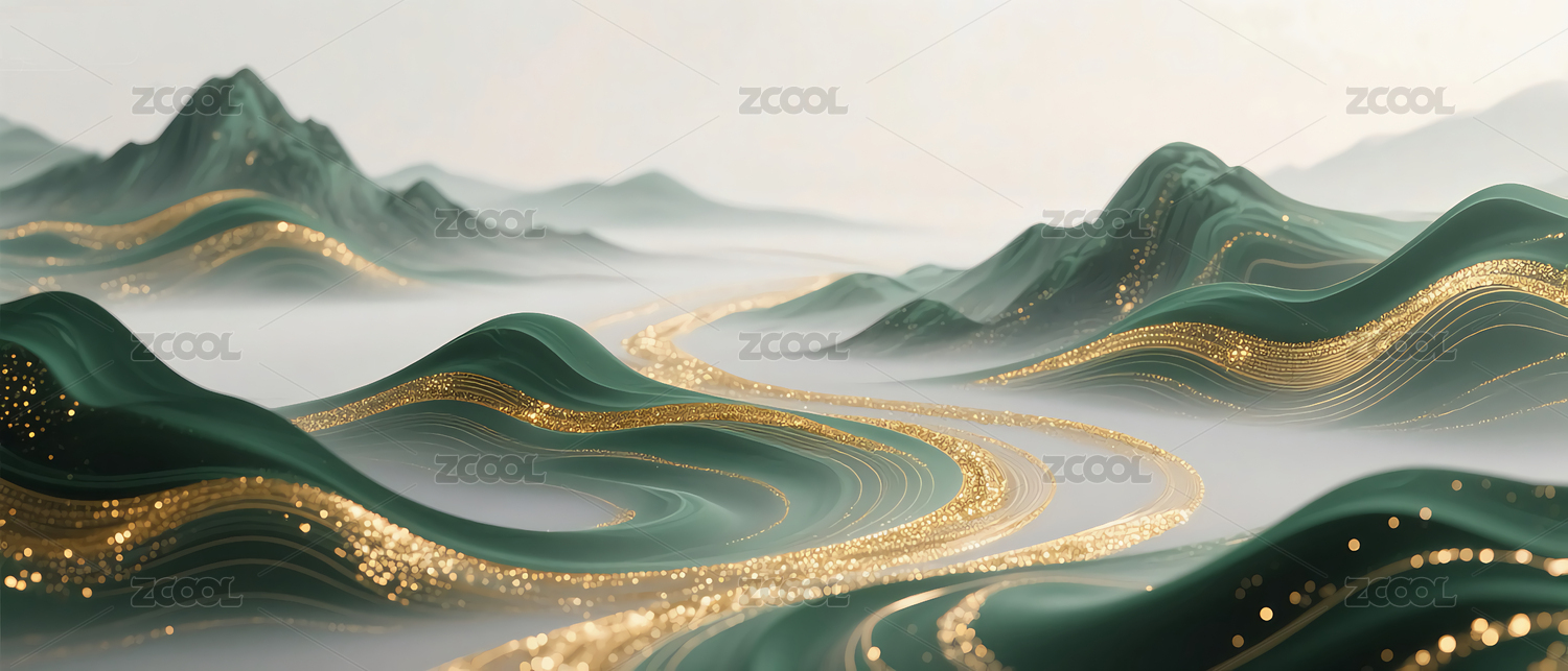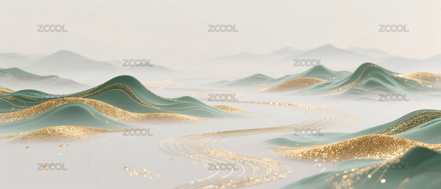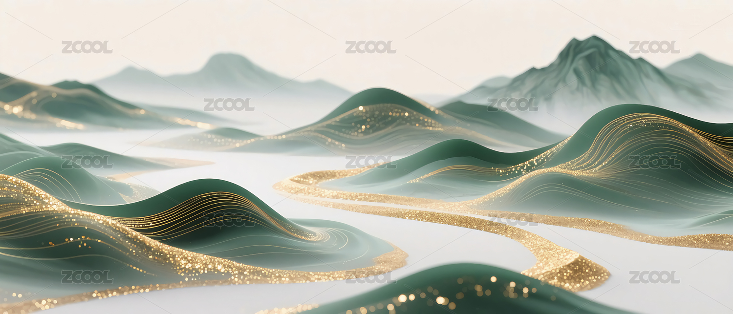 水墨画,高山,云雾,写意,背景,华贵,鎏金,工业,天空,风景