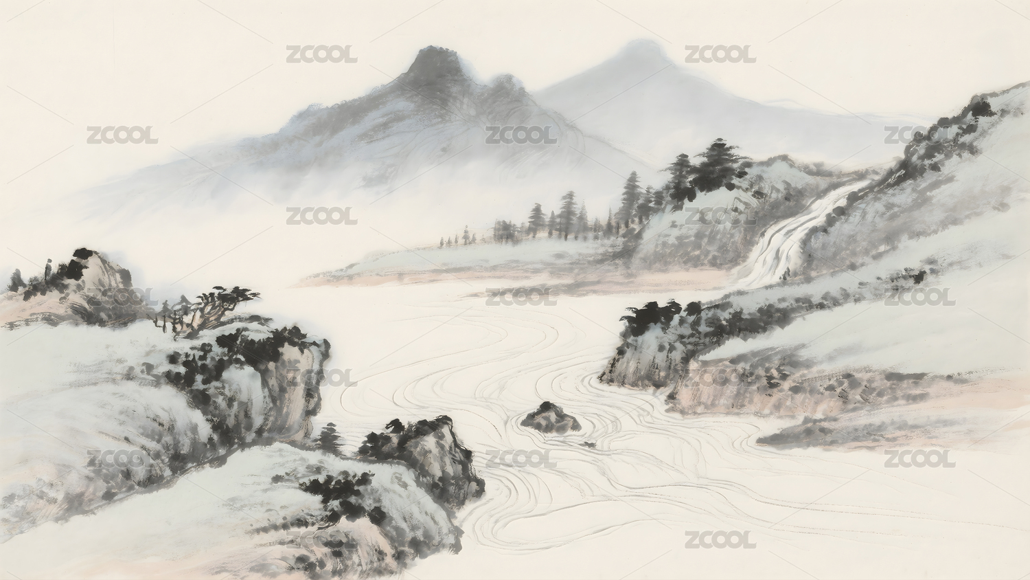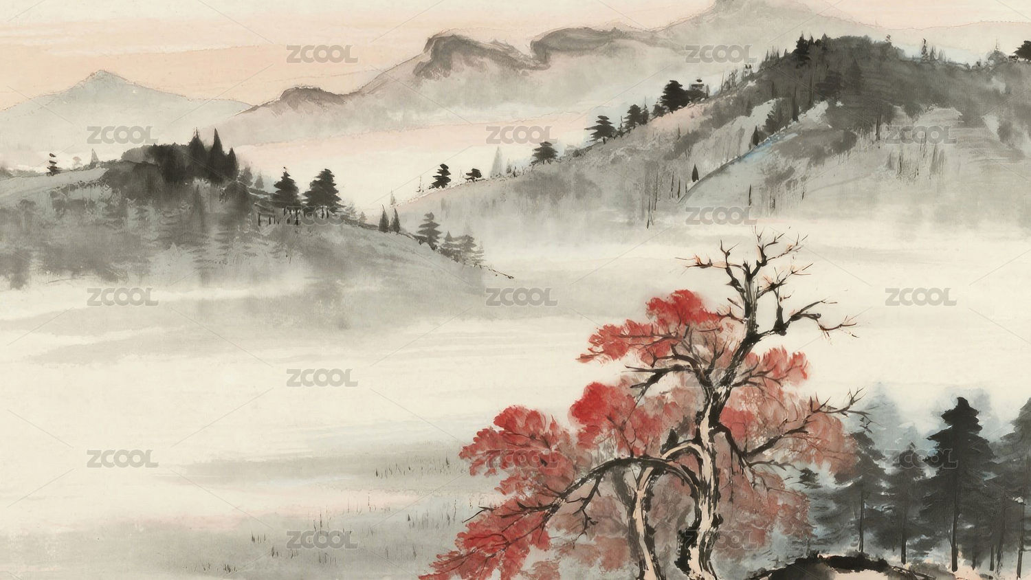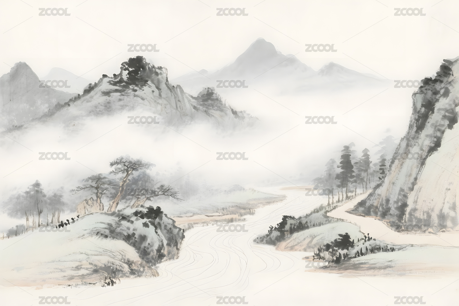 高山,水墨画,天空,树木,风景,地形,白昼,写意,意境,唯美