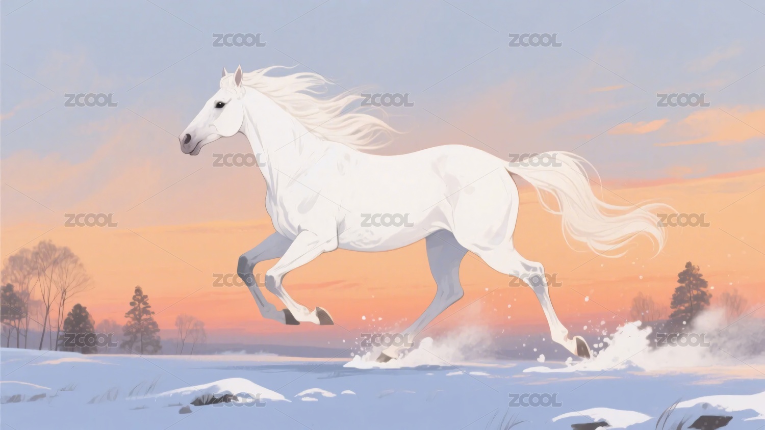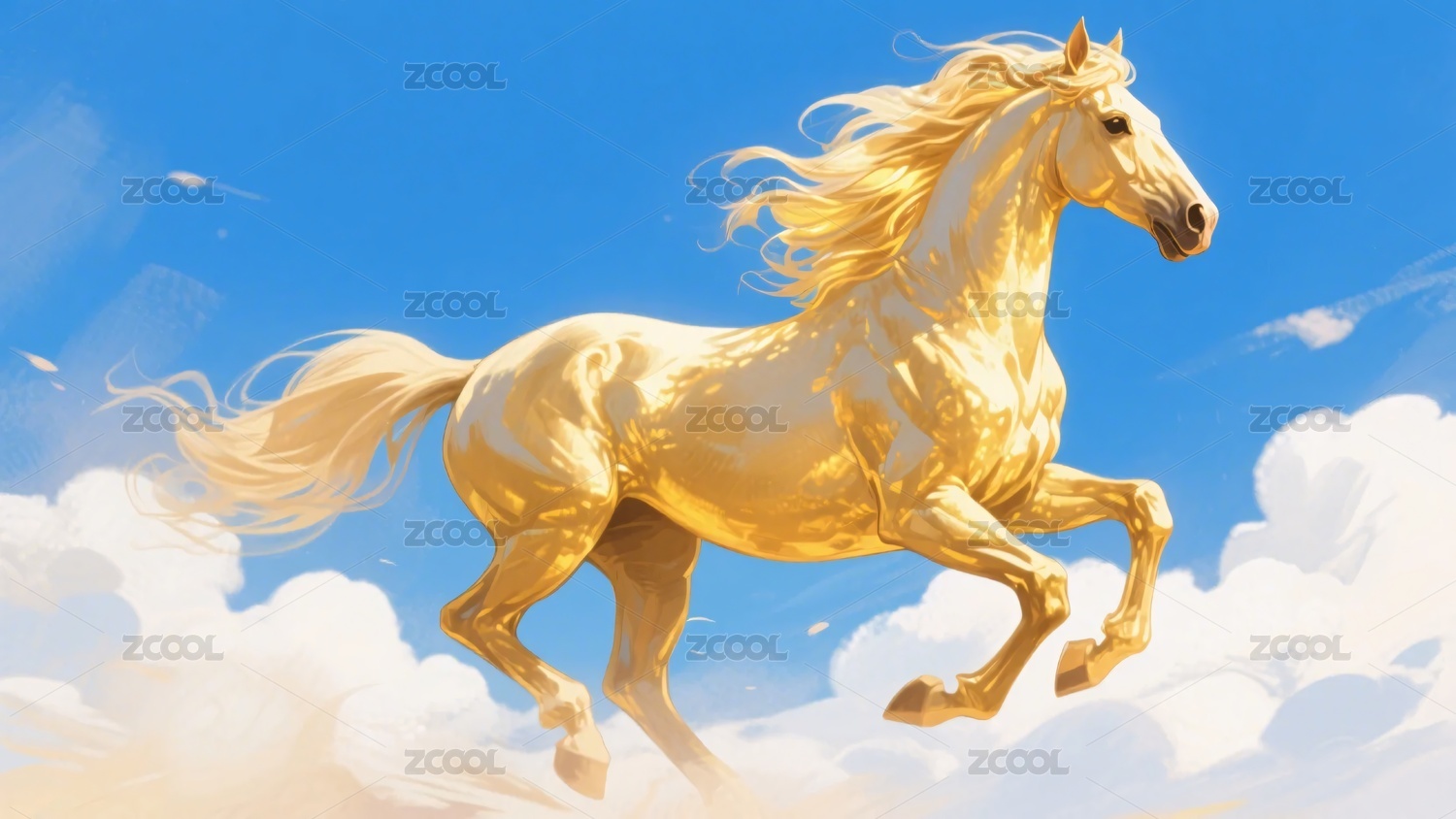 白马,云朵,奔跑,天空,插画,梦幻,主题元素,唯美,浪漫,飘逸