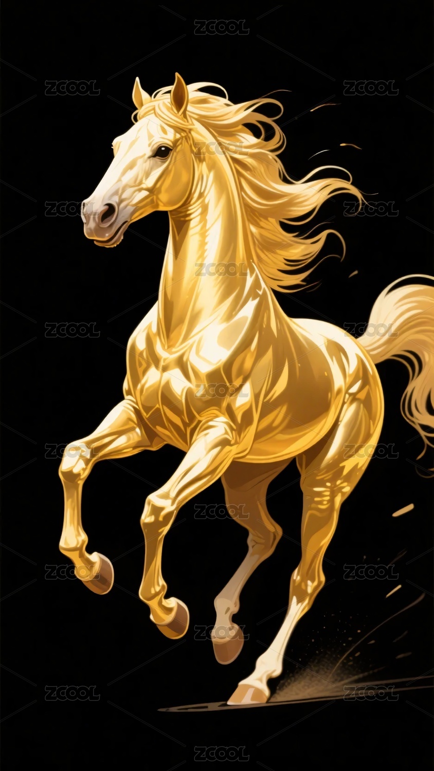 金色马,奔跑,骏马,插画,动物,动态,华丽,金属质感,光泽,艺术