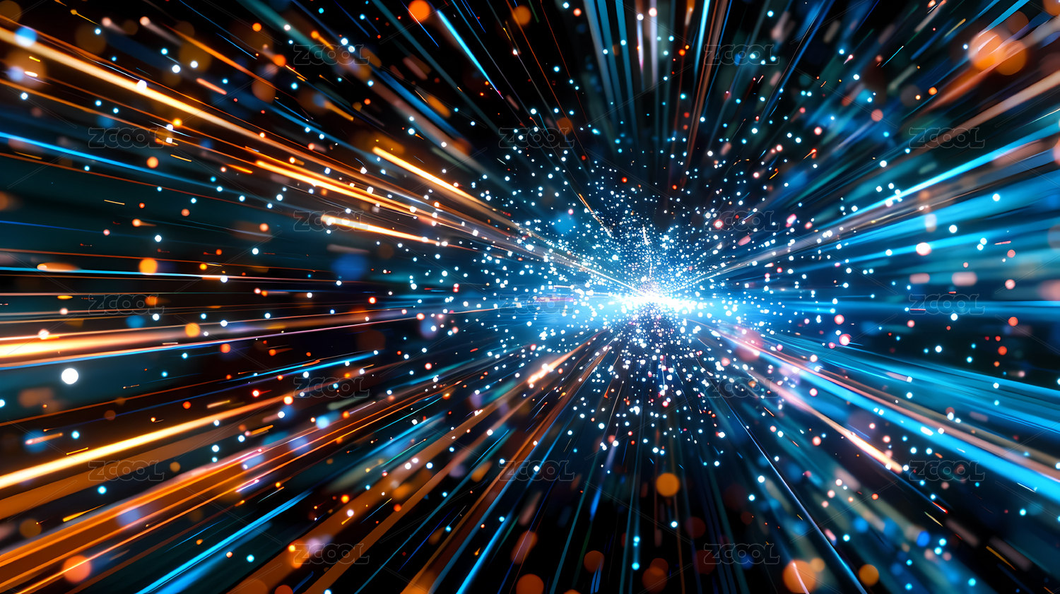 蓝色和橙色光线汇聚成的速度与光线的抽象背