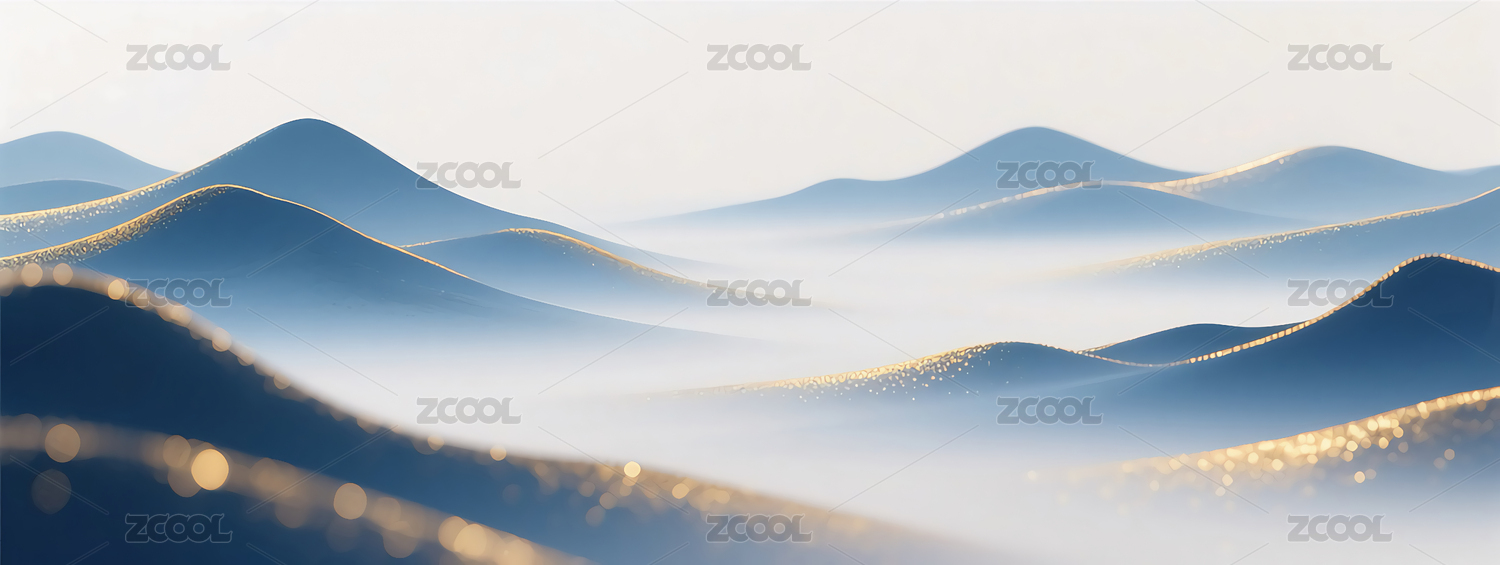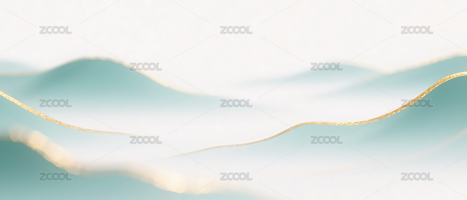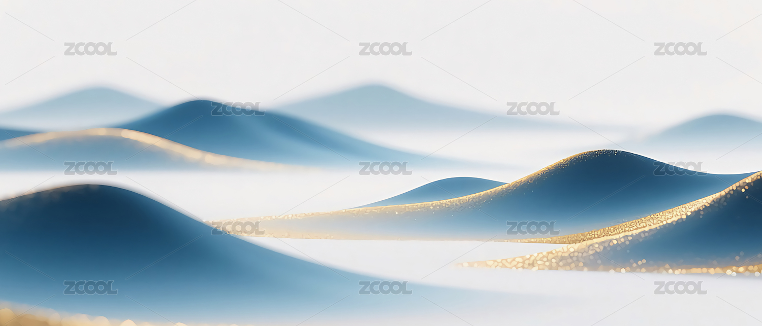 蓝绿渐变色金箔磨砂山水图
