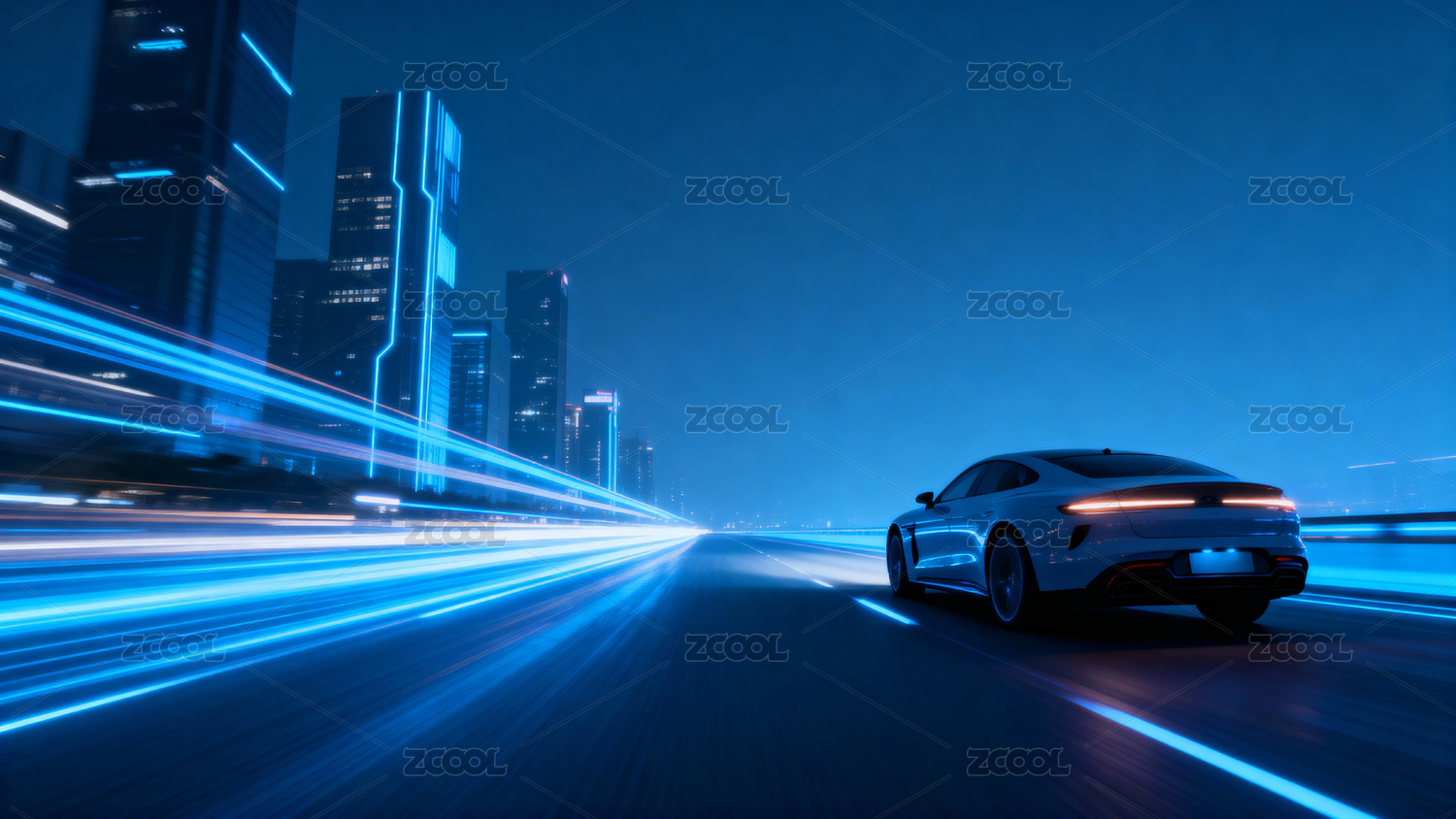 未来汽车疾驰夜景城市