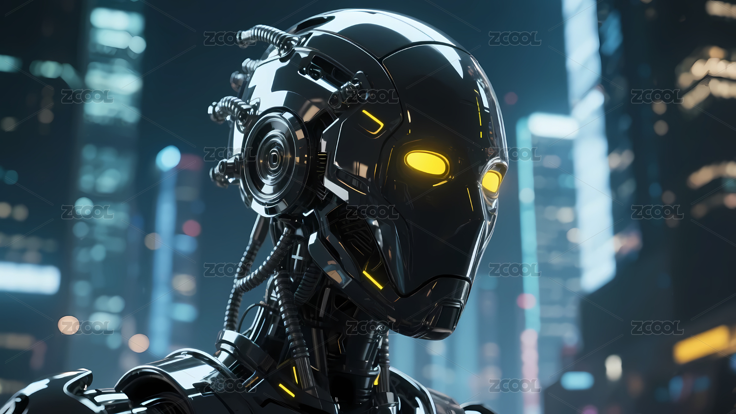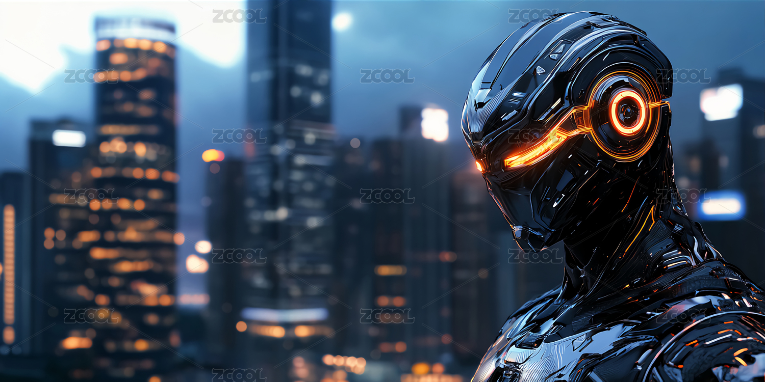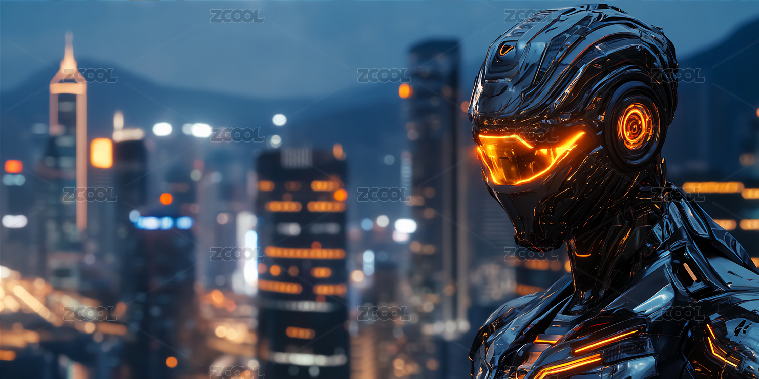 夜晚城市机械人发光眼睛