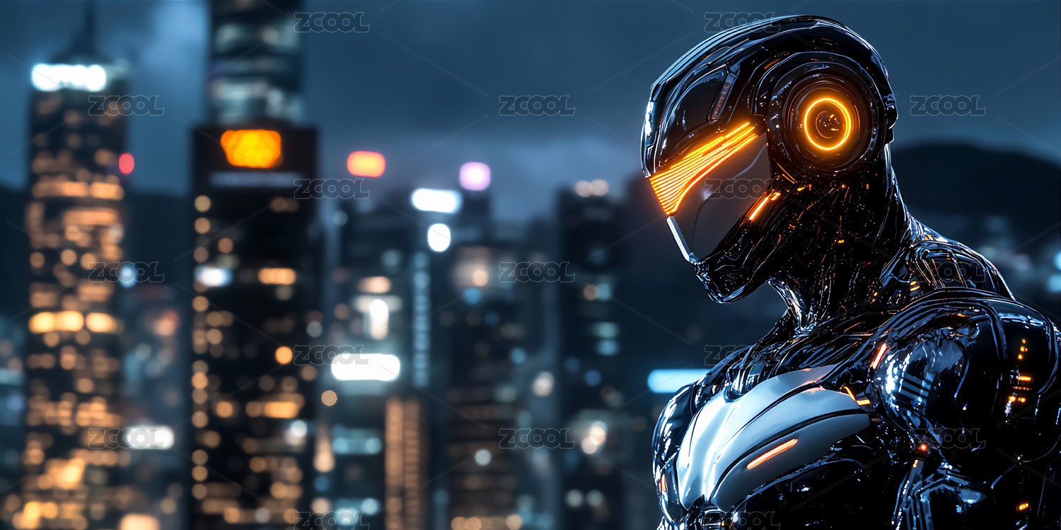 黑黄机器人夜晚城市景观