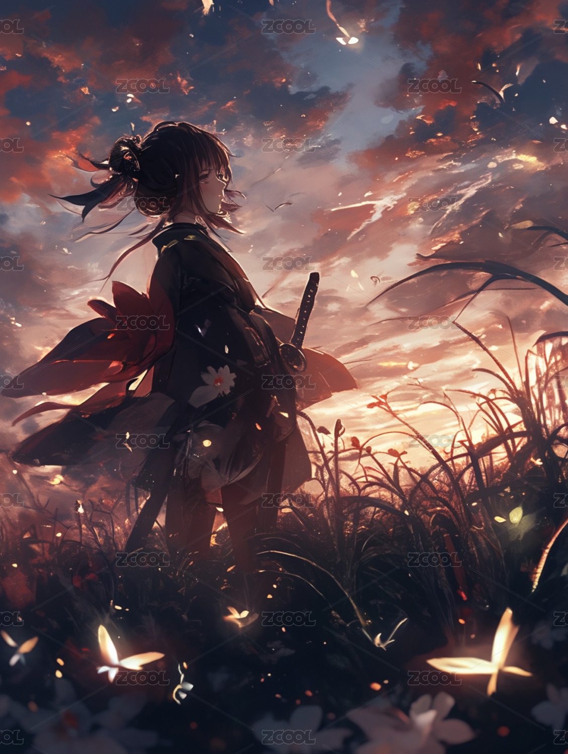 夜空下的少女与烟花