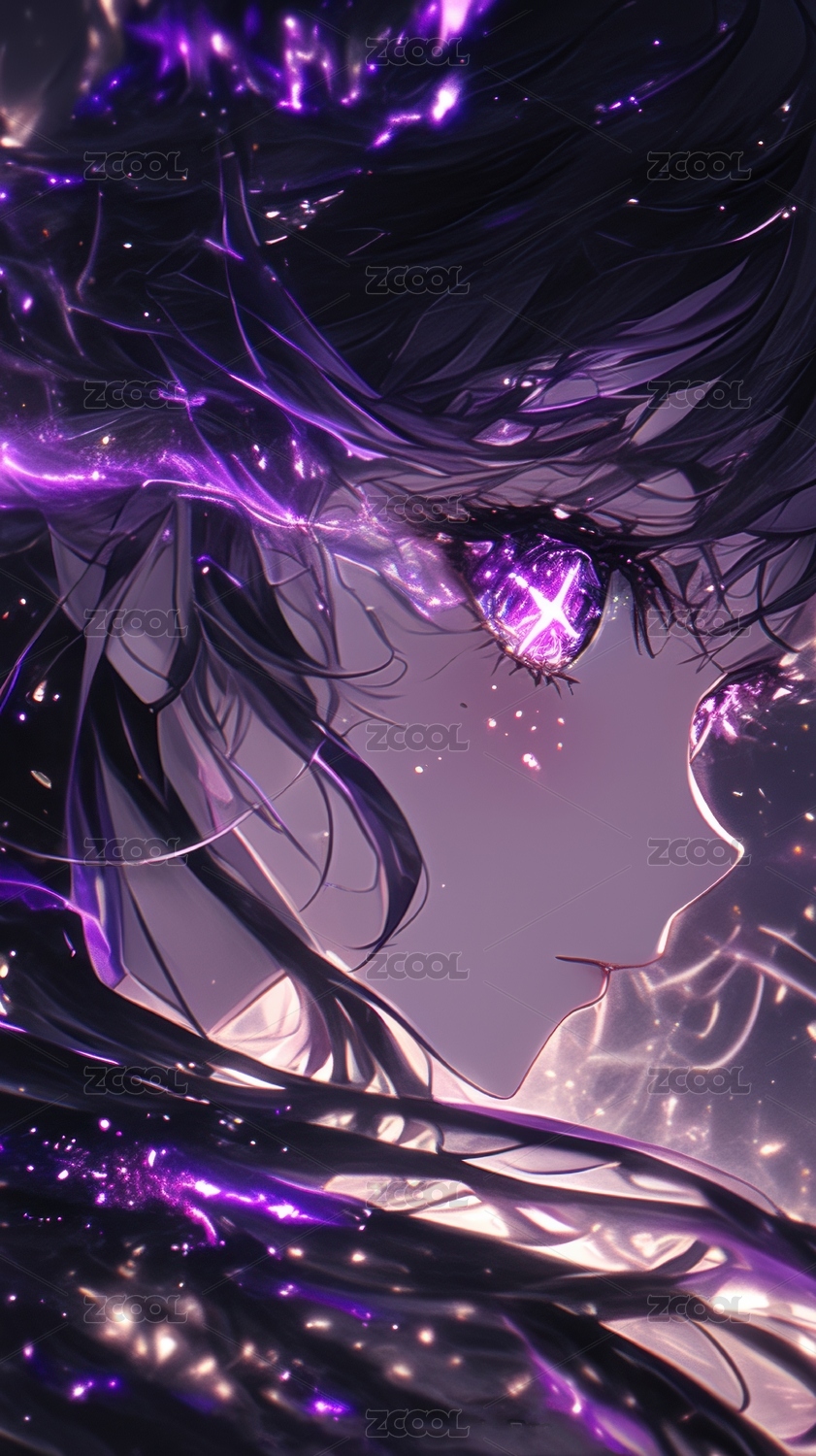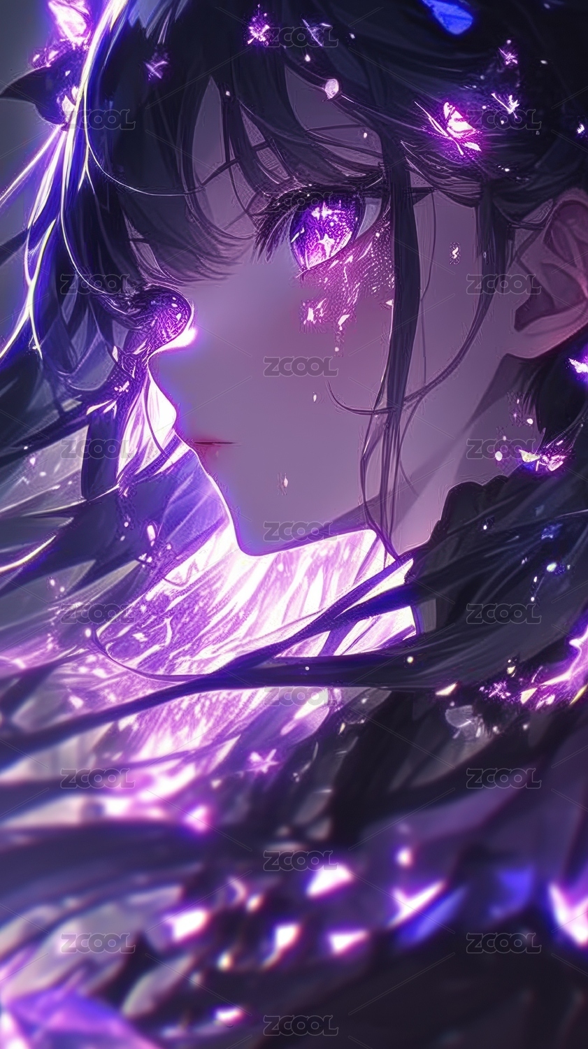 紫色光影中的神秘少女