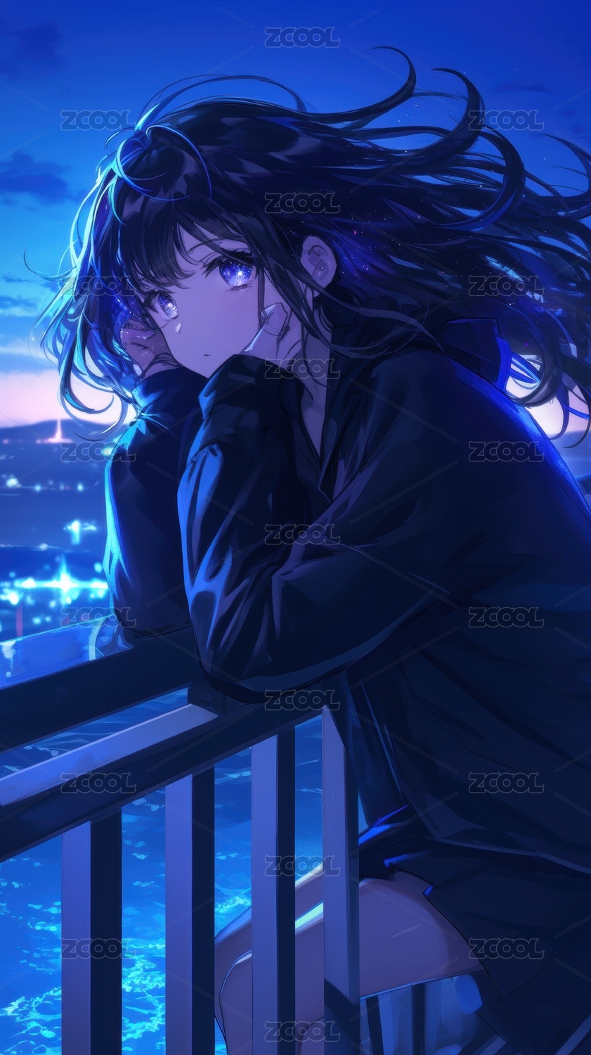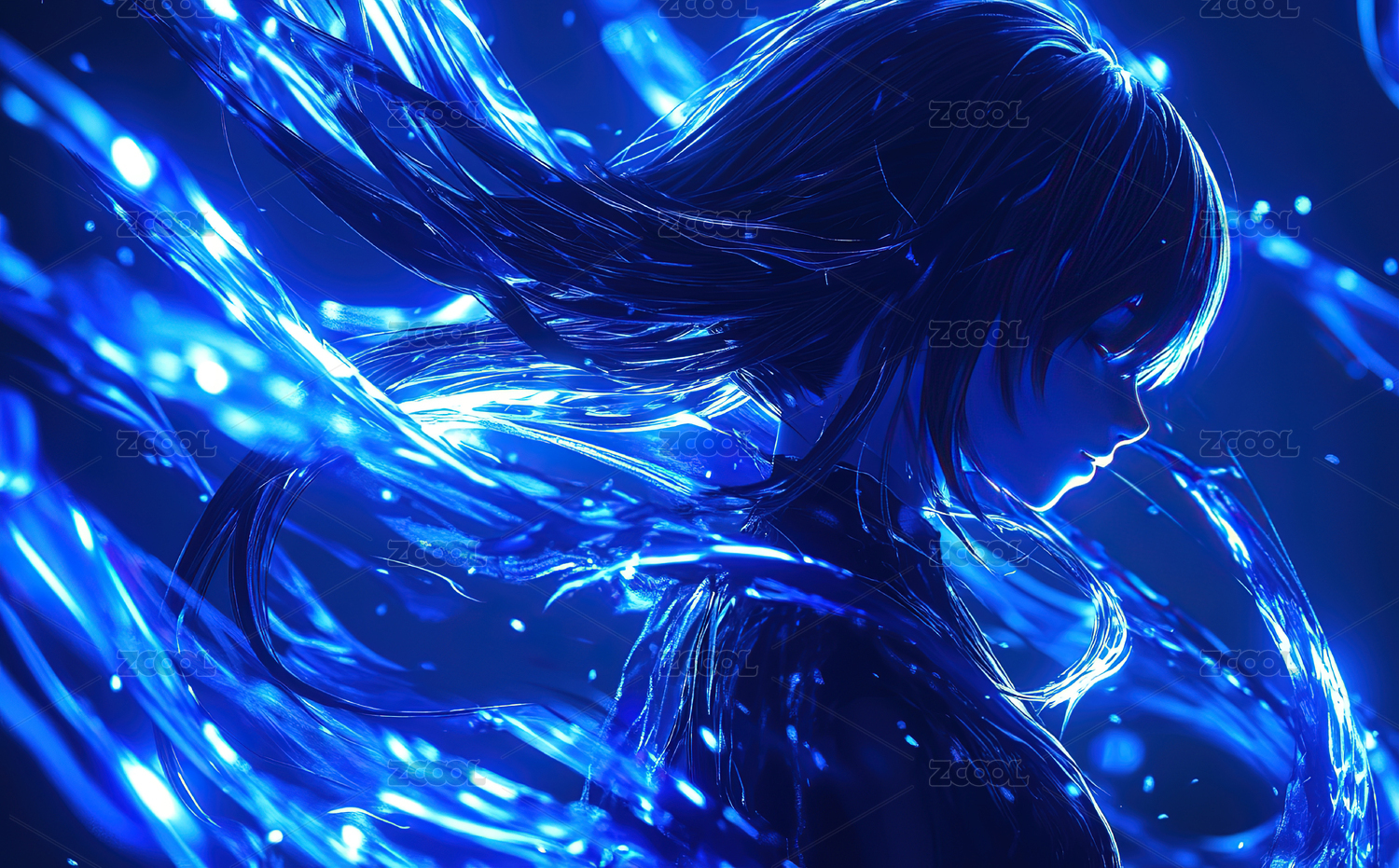 梦幻蓝光中的少女