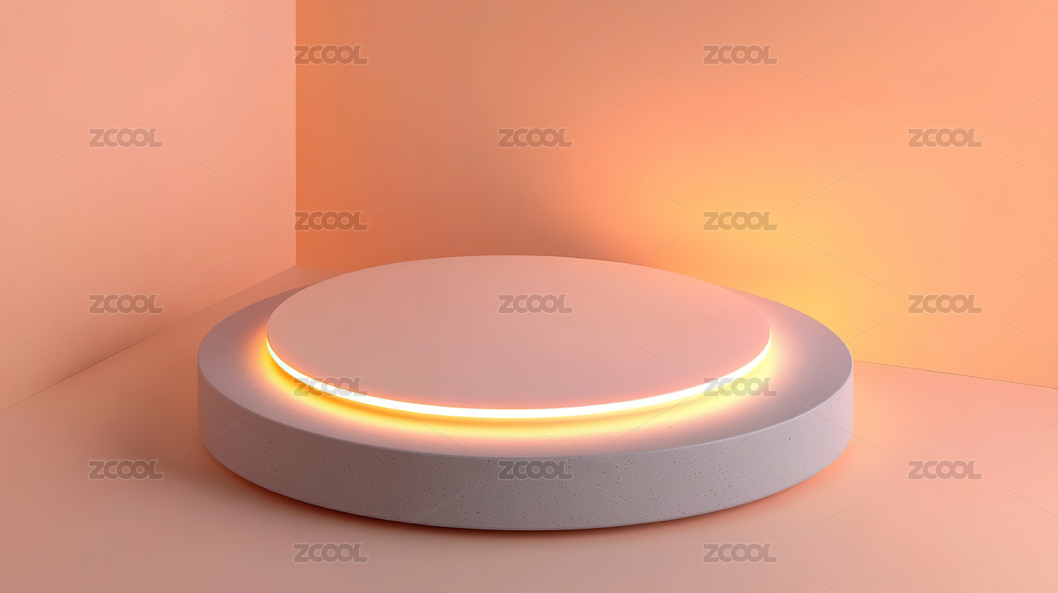 产品展示,科技感,展示台,简约风,几何形,暖色光,背景墙,立体感