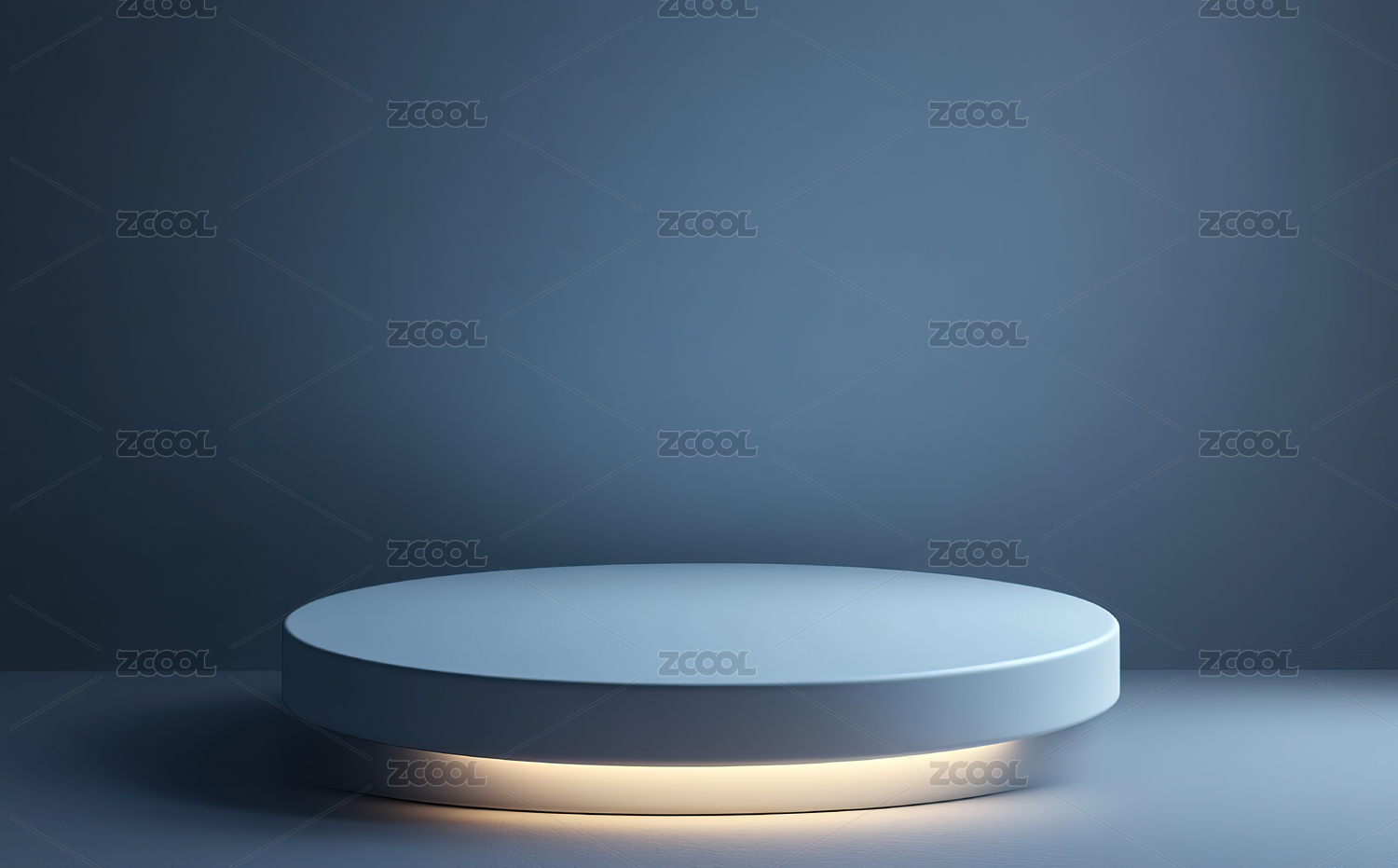 蓝色背景下的白色圆台展示舞台
