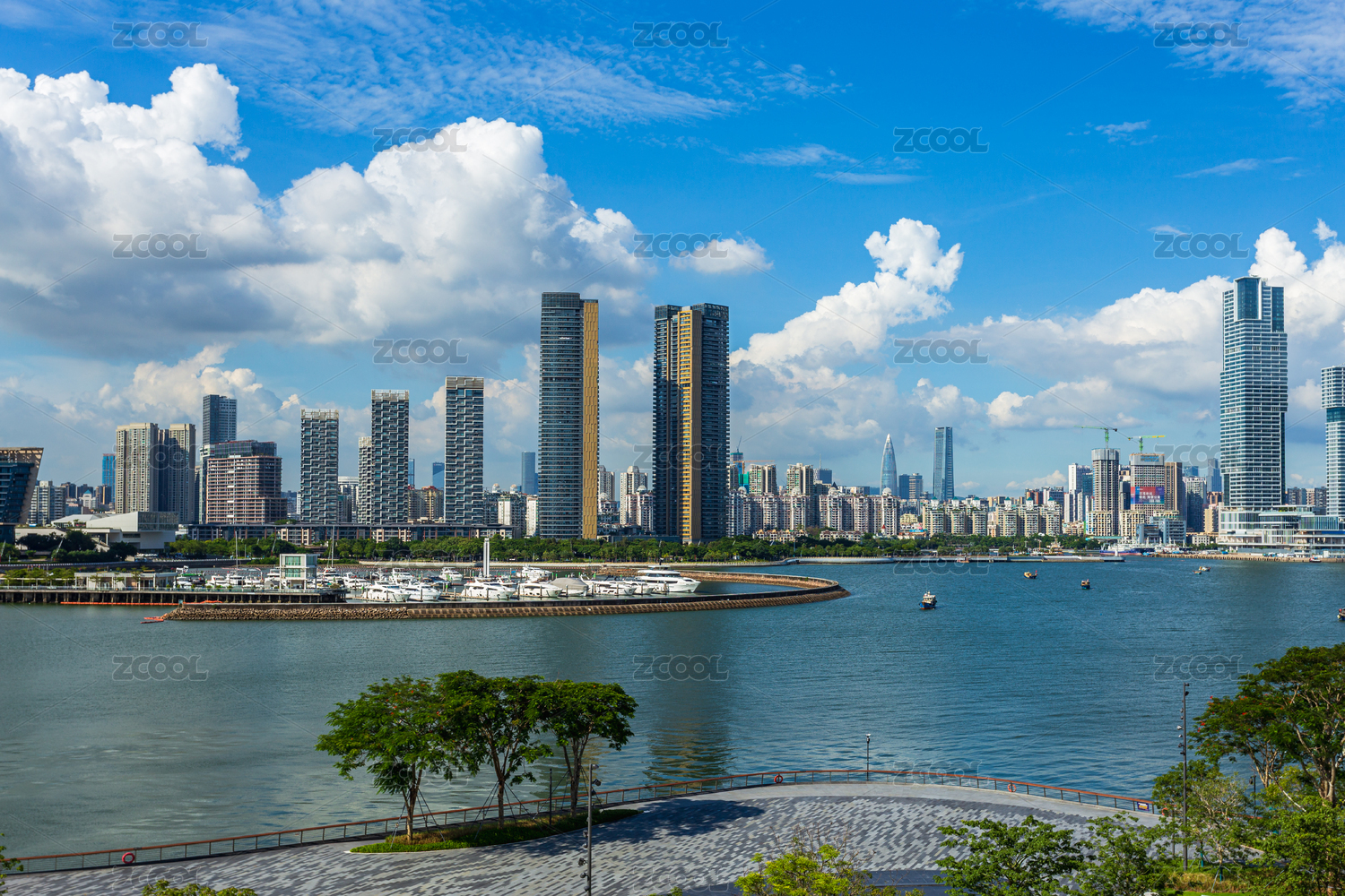 中国广东省深圳市后海建筑群及深圳人才公园风光