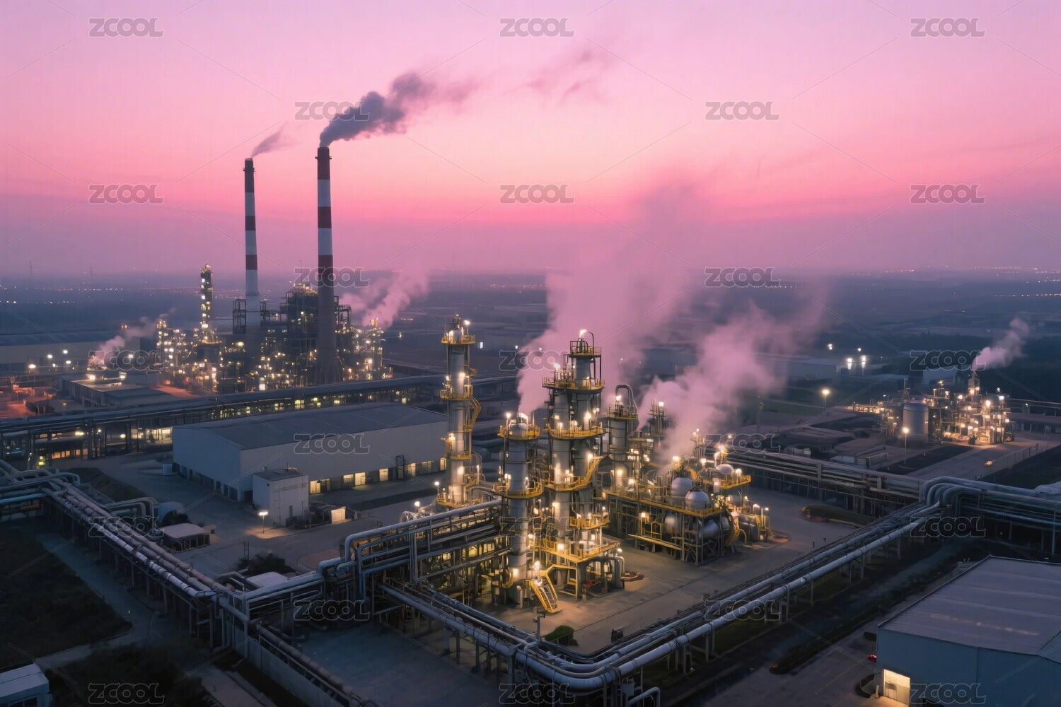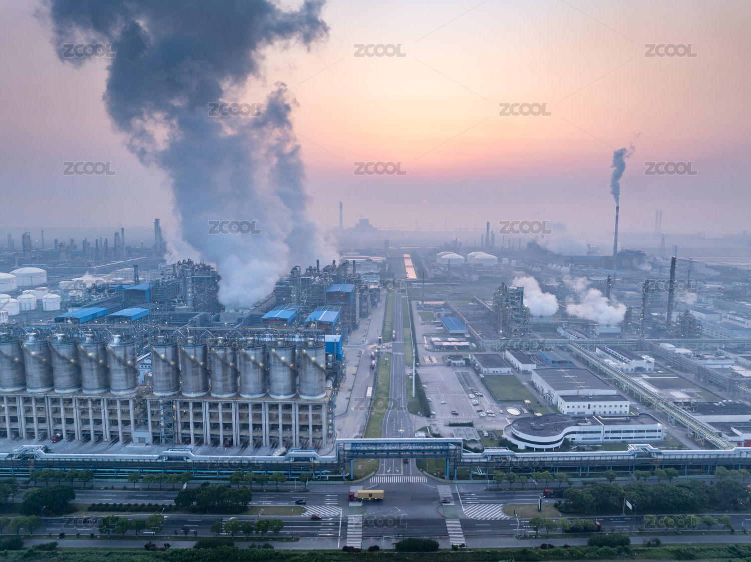 俯瞰化工厂日出
