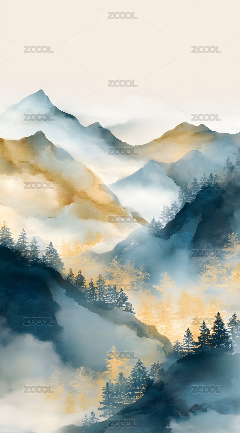 梦幻,山峰,金色,云海,晨光,蓝紫,峻岭,高耸,辉煌,壮丽