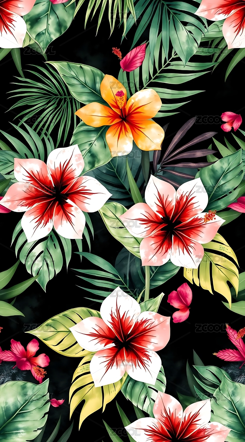 彩色线条花卉重复无缝图案纺织品装饰背景