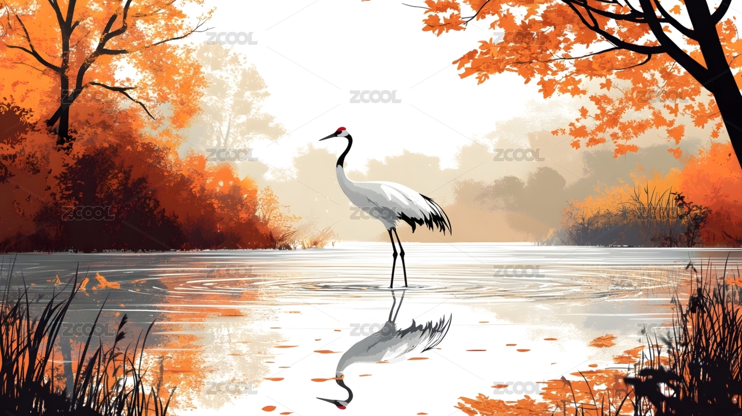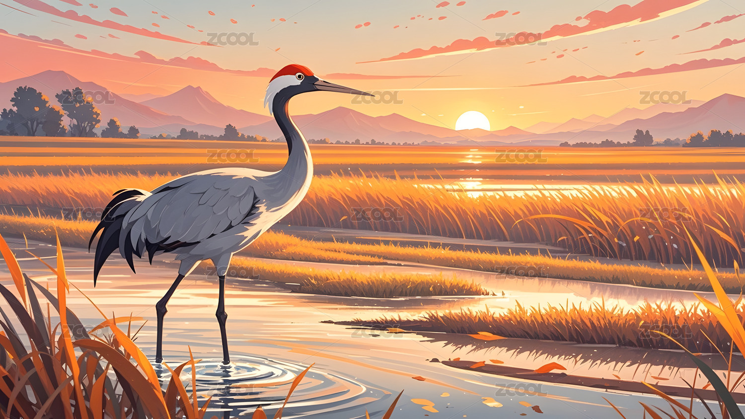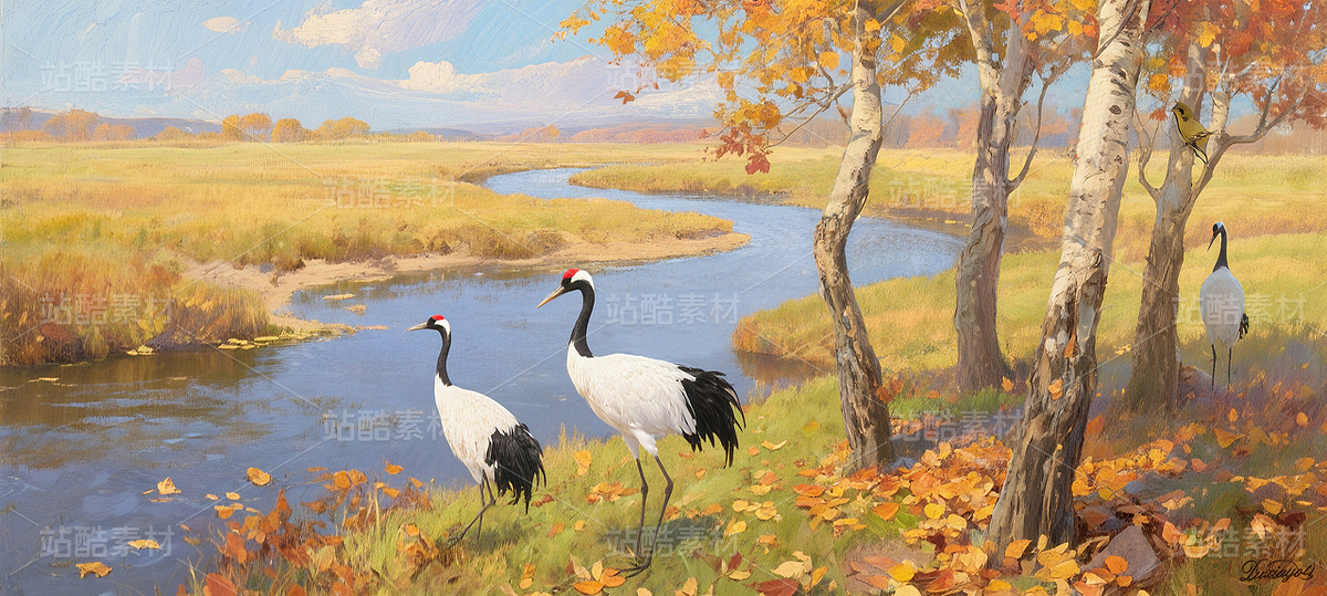 鸬鹚夕阳油画鸿运当头风景画油画动物与风景油画