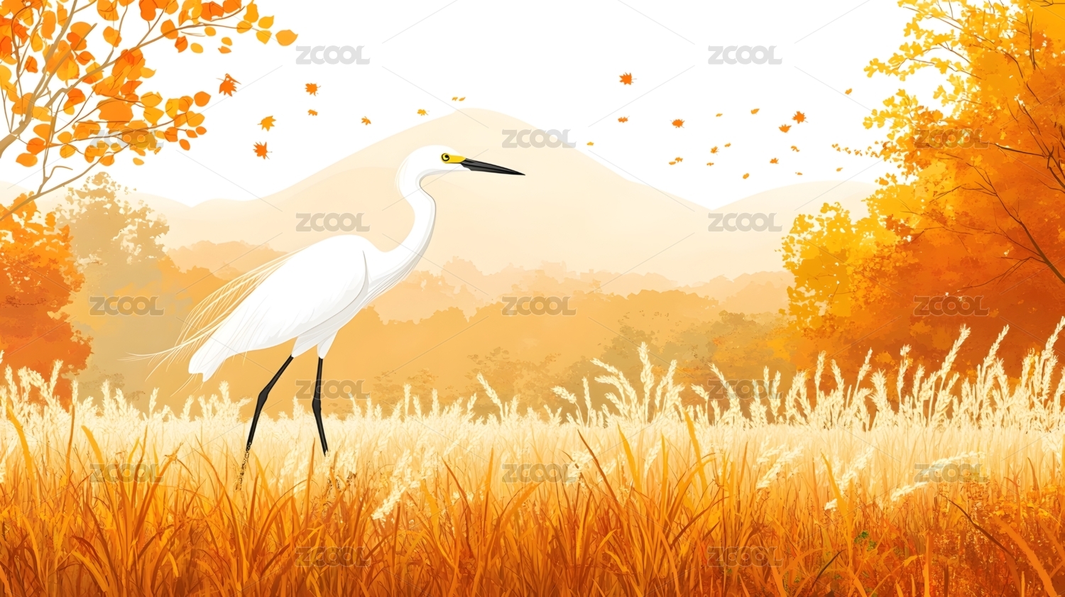 金黄稻田中的优雅白鹭
