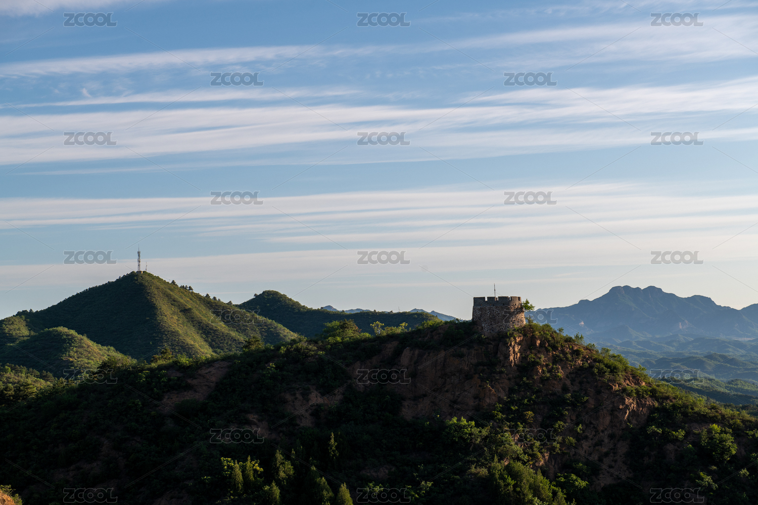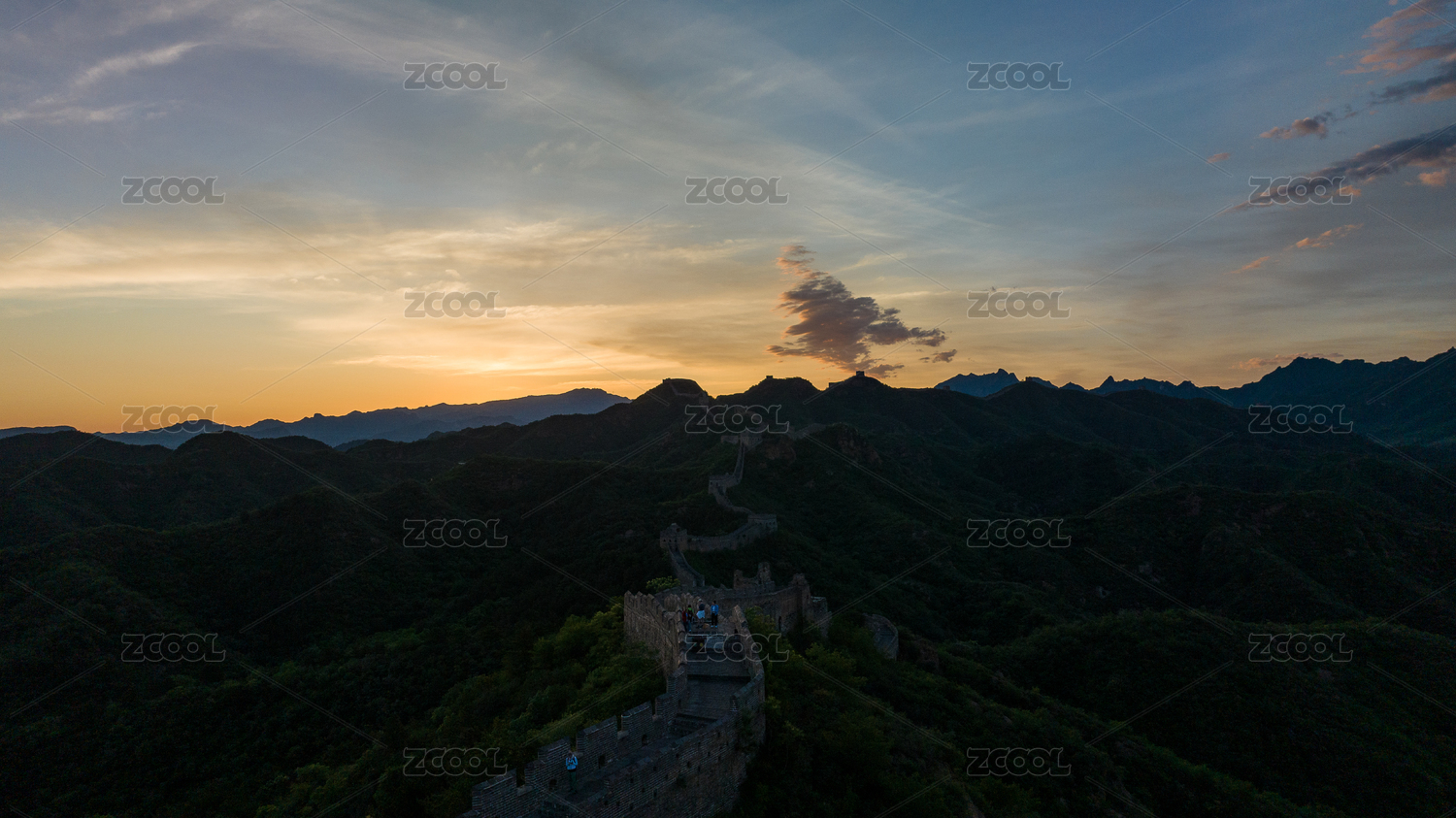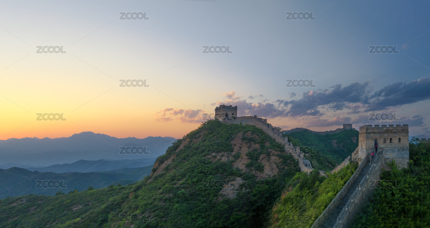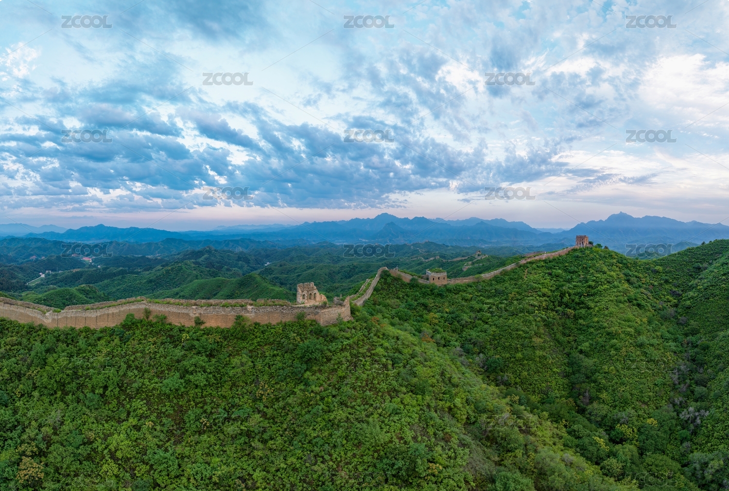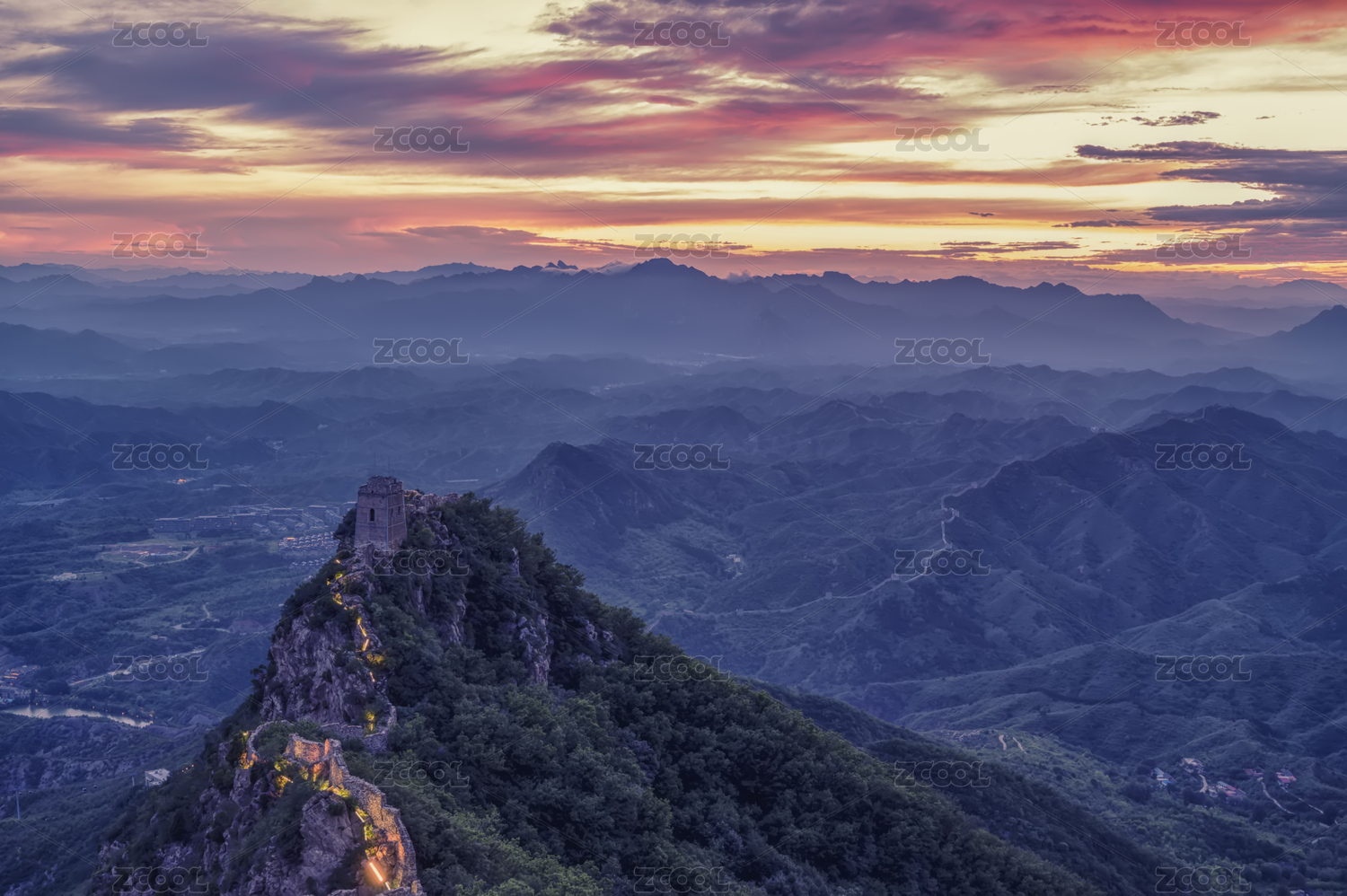 夕阳照射过云雨下的中国司马台长城壮美景观