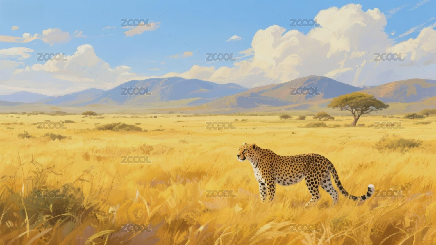 非洲草原动物油画世界油画风景油画印象派油画世界名画