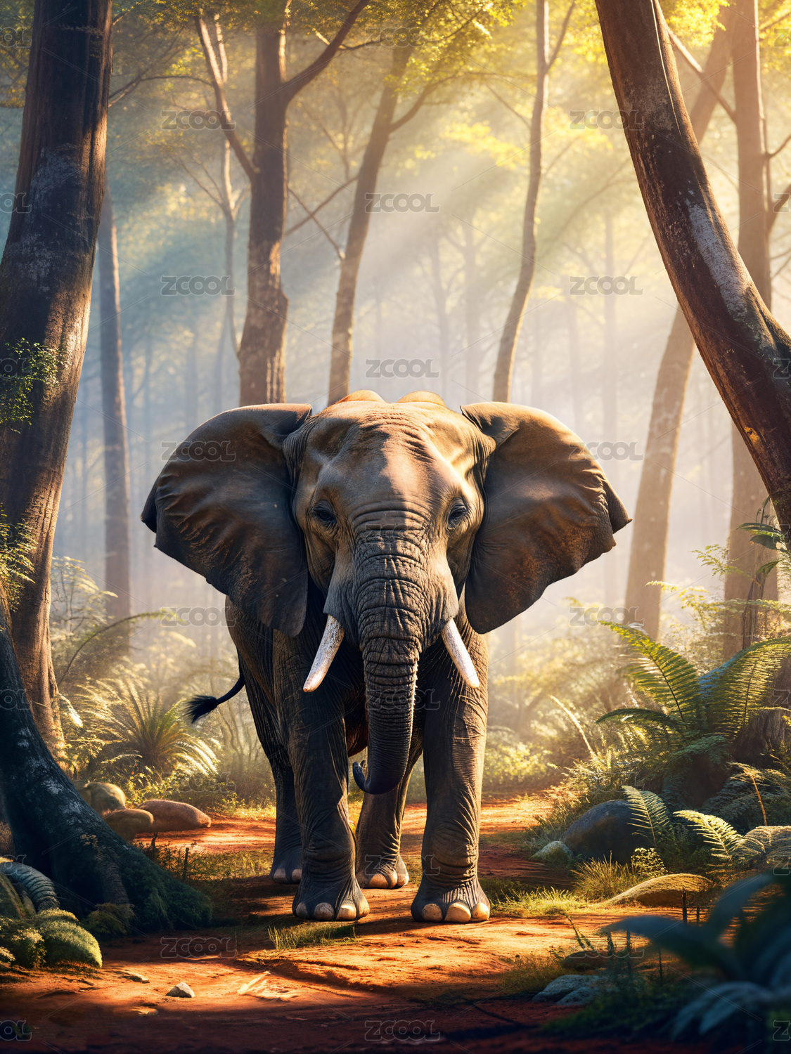 大象风景动物油画世界油画风景油画印象派油画非洲草原
