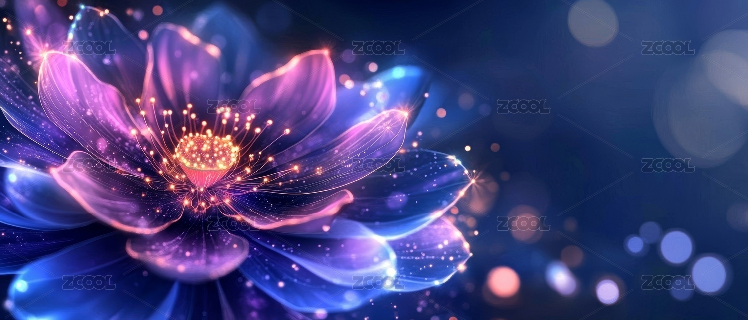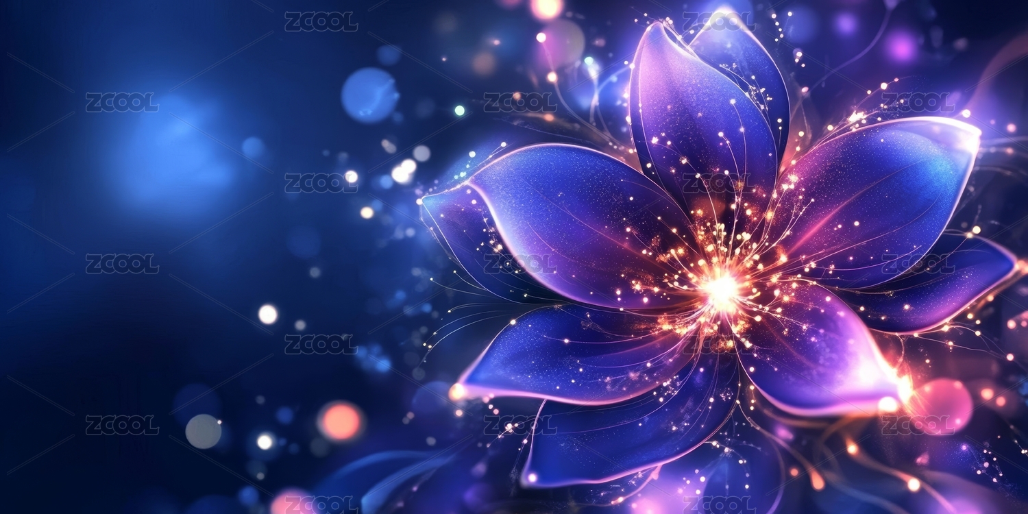 花朵花瓣绽放科技背景抽象数字艺术插画