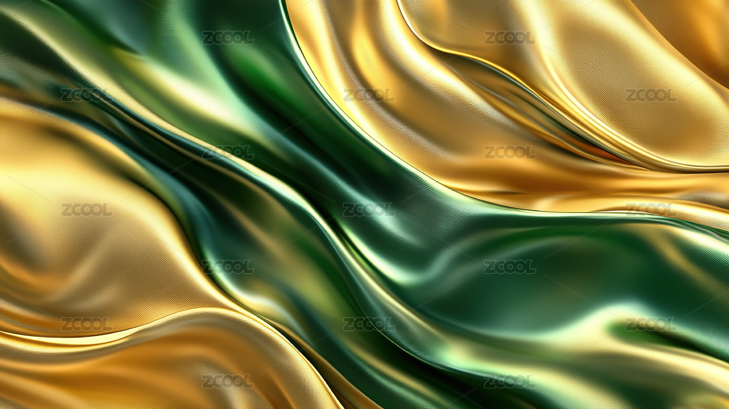 深绿金黄丝绸质感背景