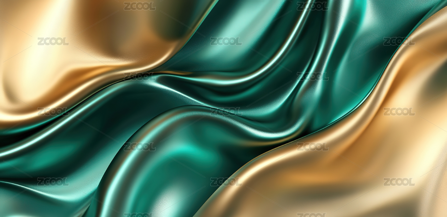 深绿金色丝绸质感背景