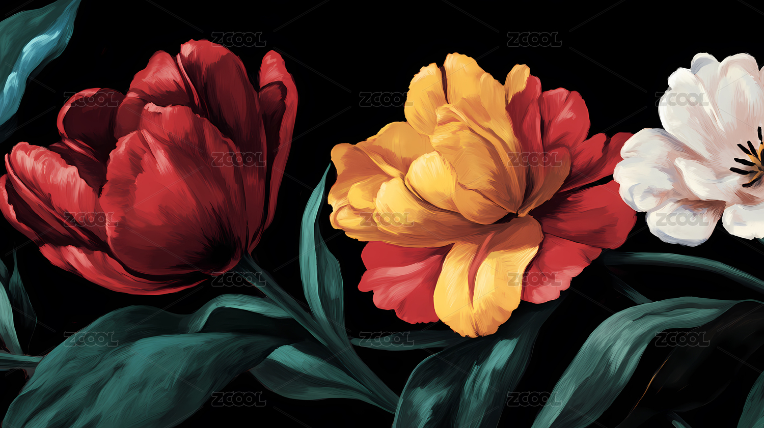 郁金香花束暗黑背景