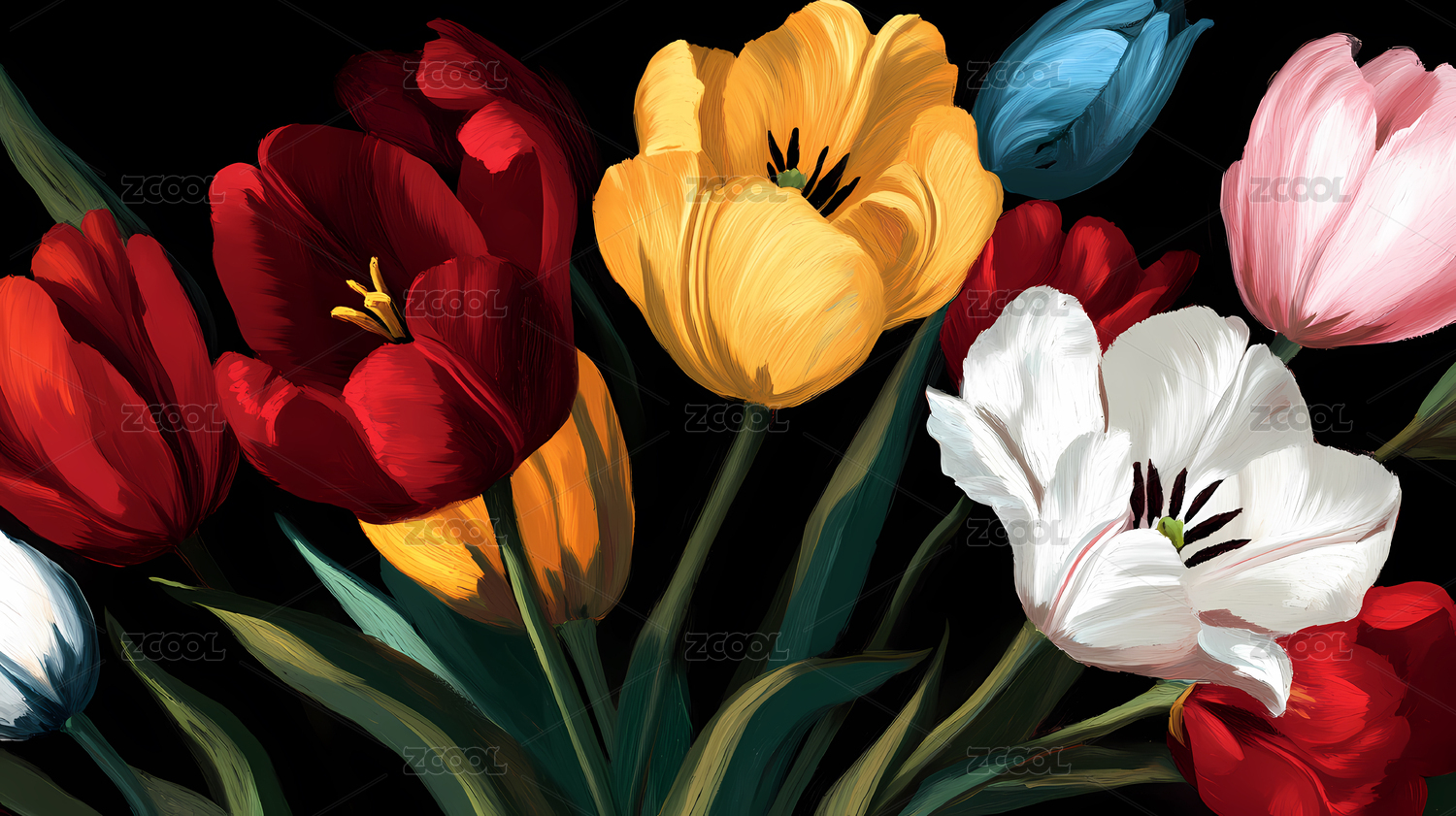 多彩郁金香花卉图案