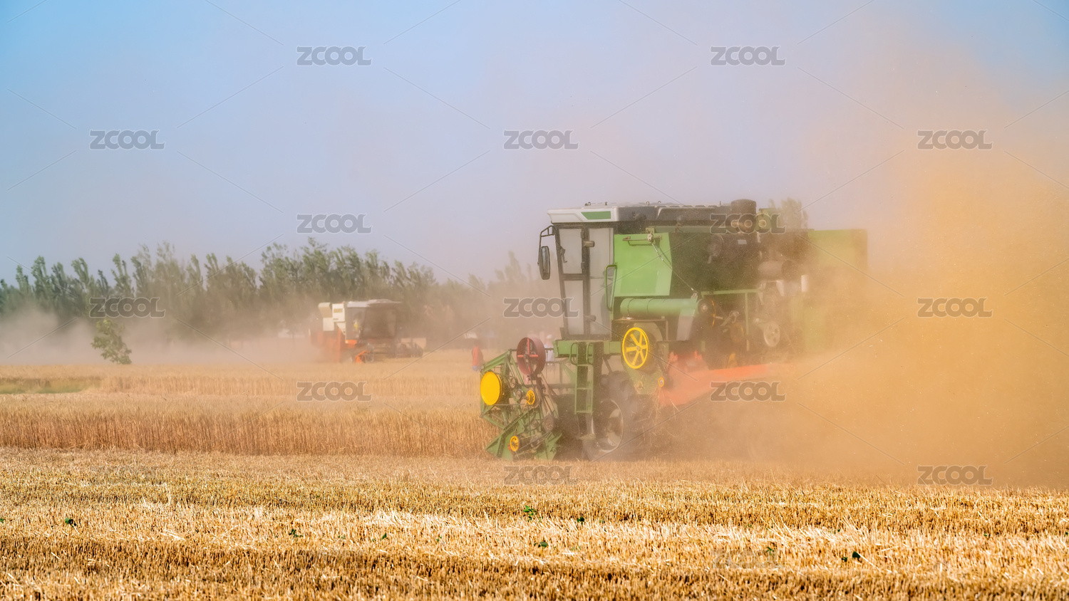 夏季农田里收割麦子机械化