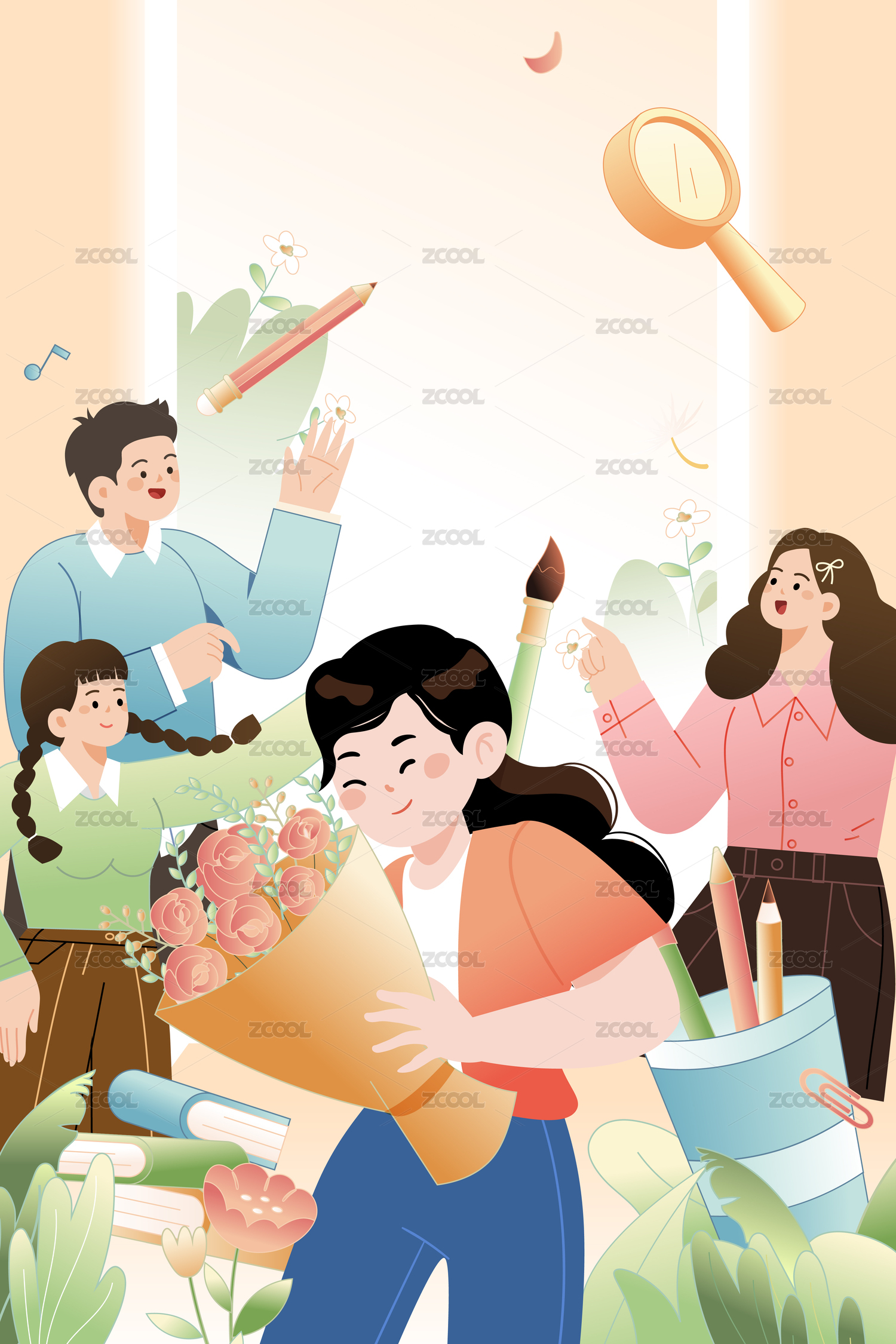 背景,矢量,插画,元素,卡通,渐变,扁平,插图,教育,学生