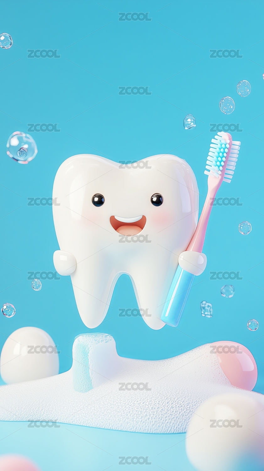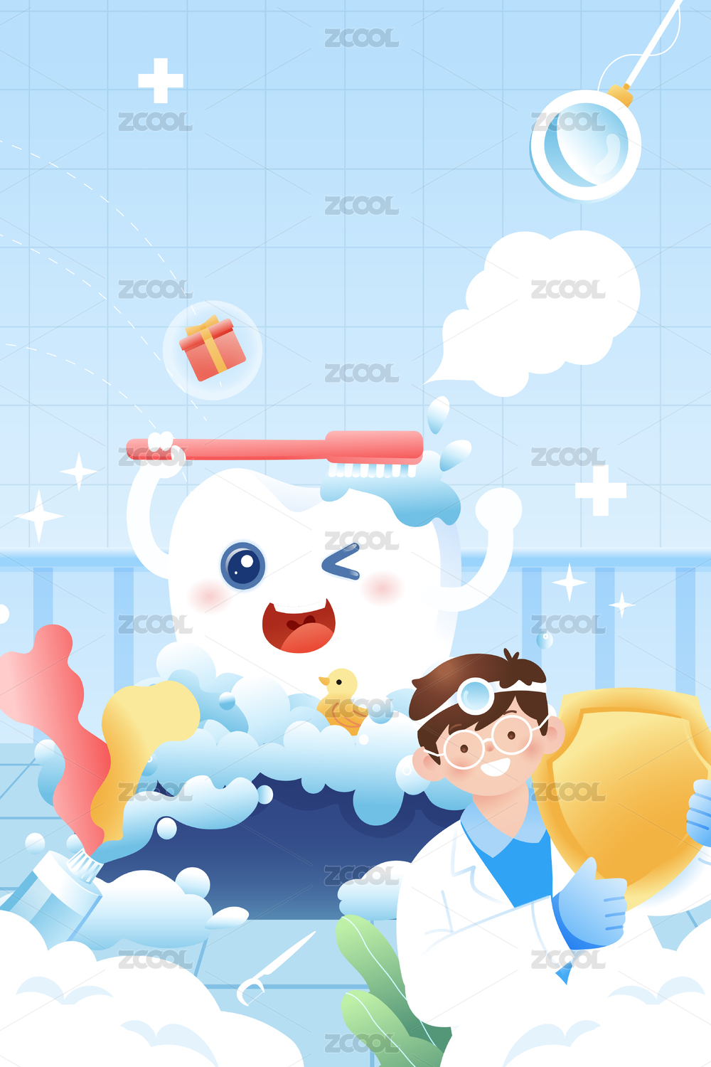 牙刷牙齿蓝色泡沫保护牙齿全国爱牙日插画