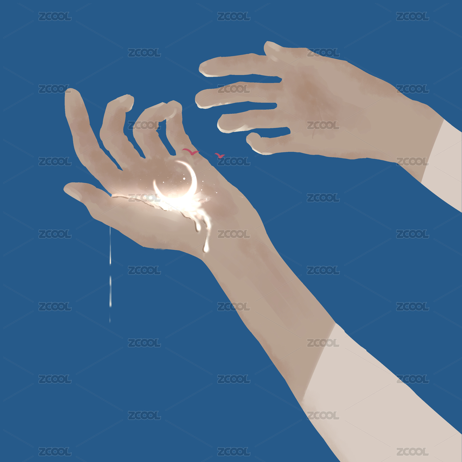 双手迎向星空艺术插画壁纸