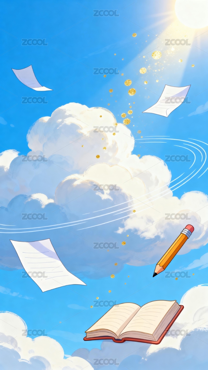 主视觉,场景,建筑,户外,书本,奇幻,校园,操场,雷电,天空