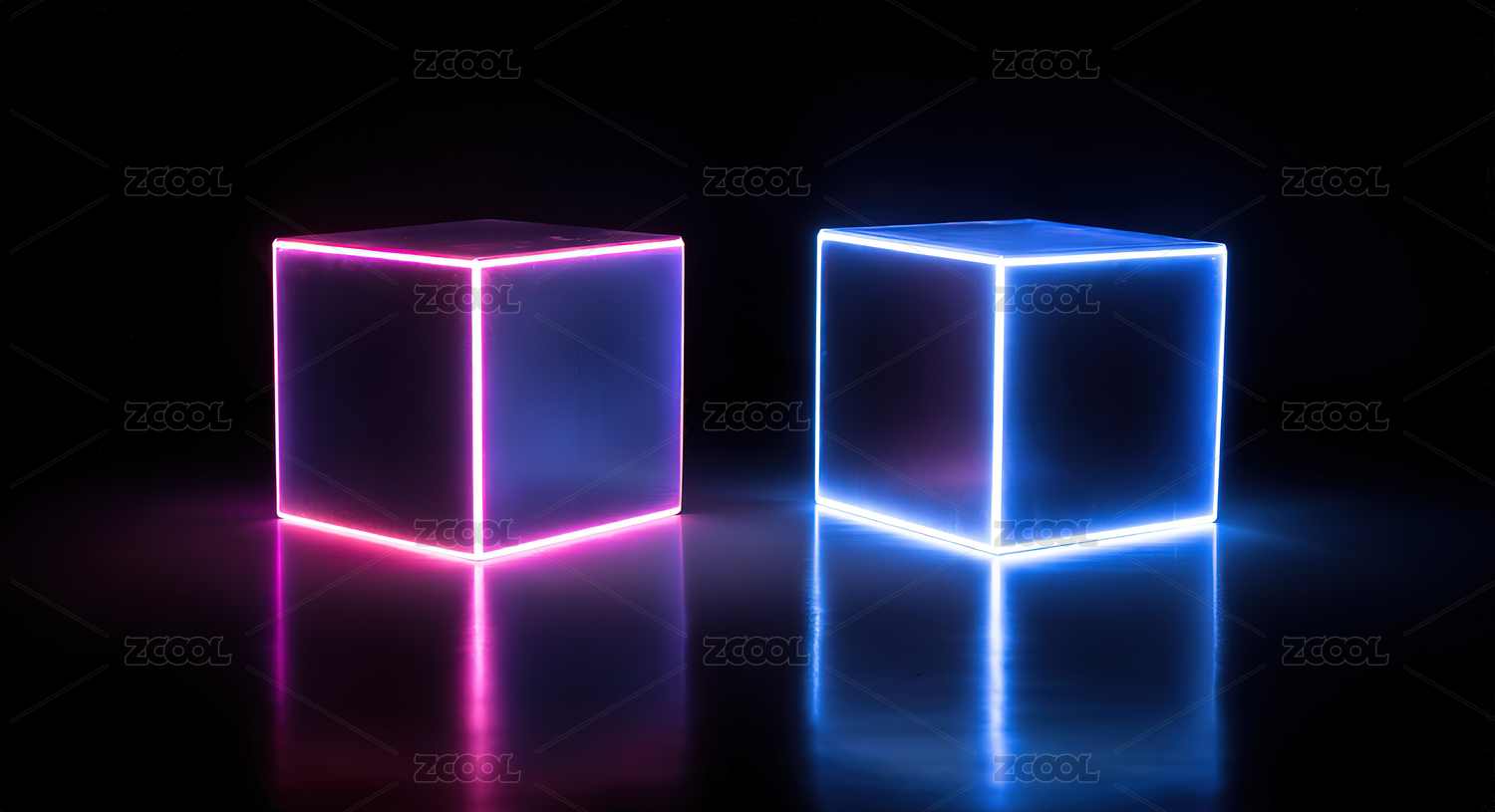 抽象霓虹灯发光几何线条3D渲染商务背景
