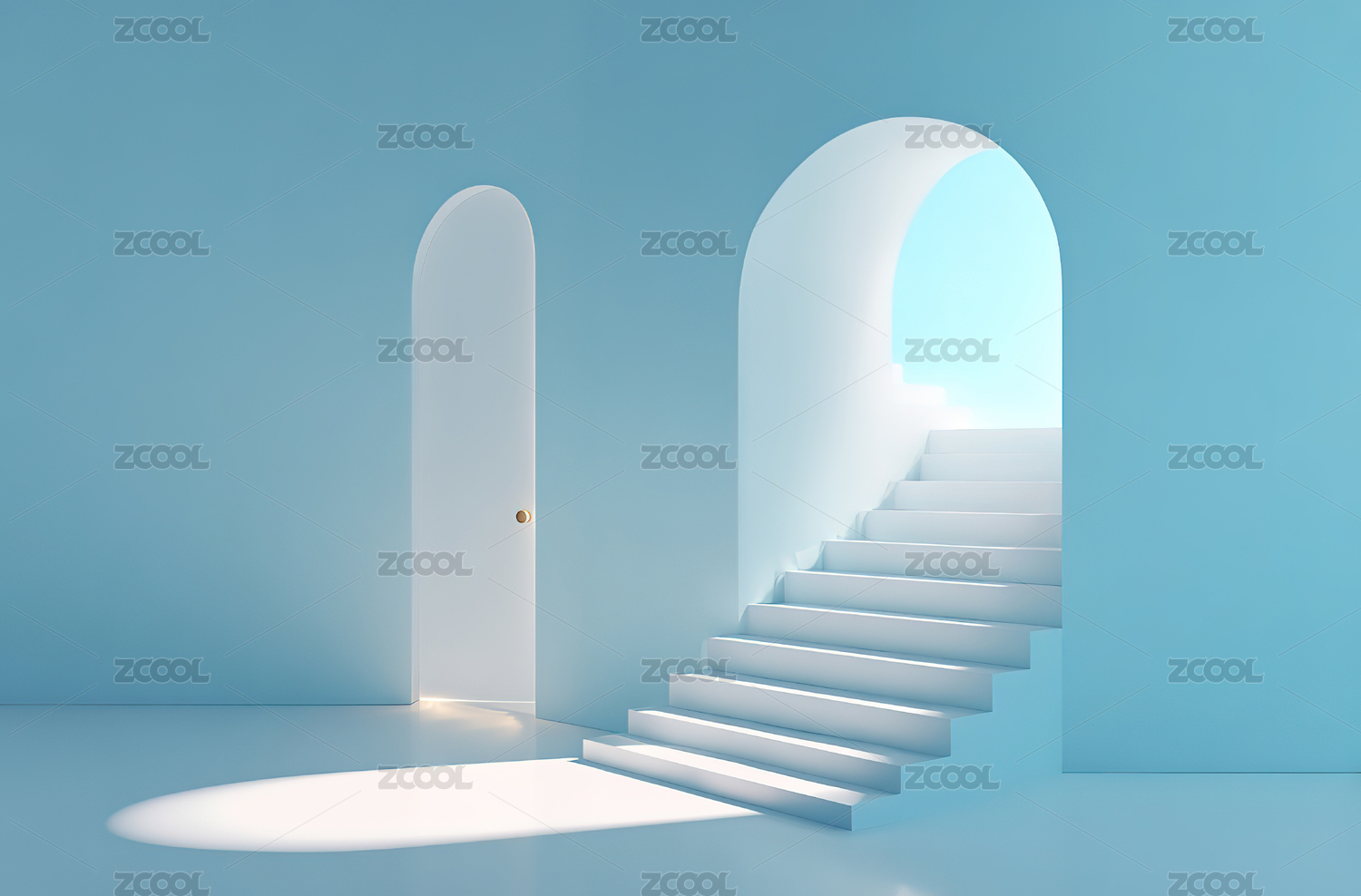现代,设计,蓝色,空间,艺术,创意,拱门,光影,抽象,极简