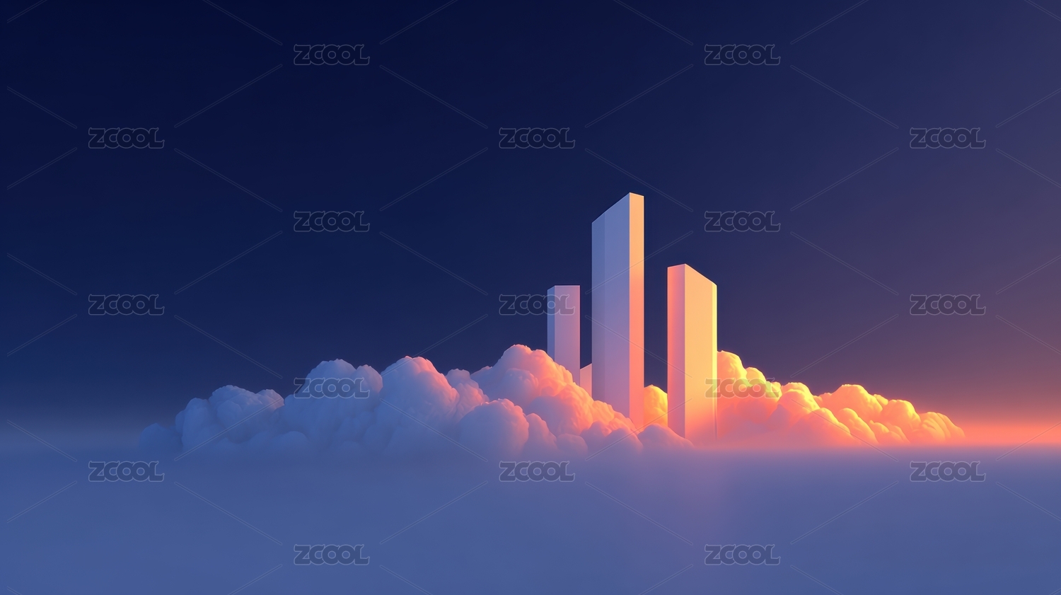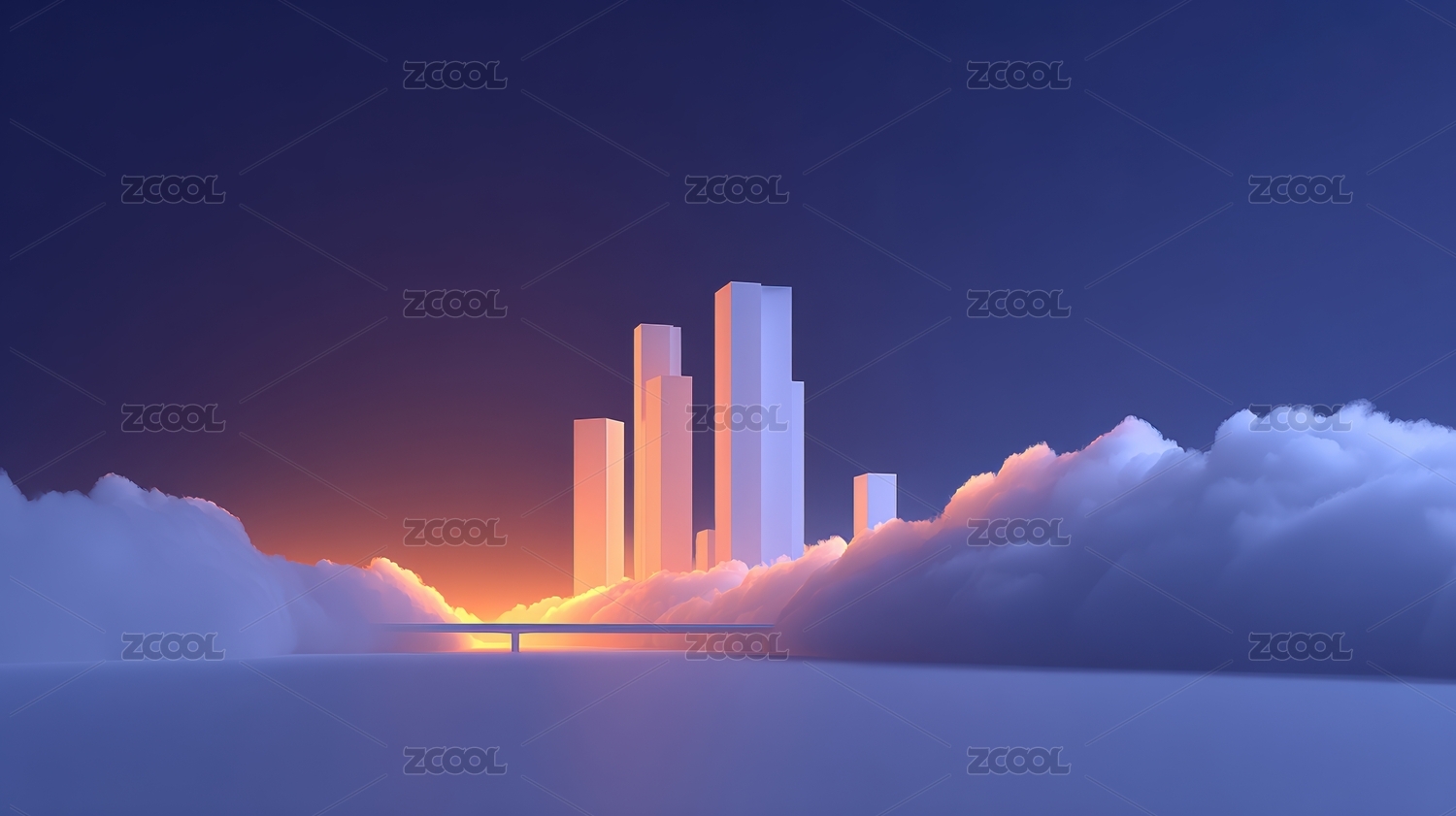 科技,未来,云朵,设计,城市,建筑,灯光,艺术,梦幻,云端