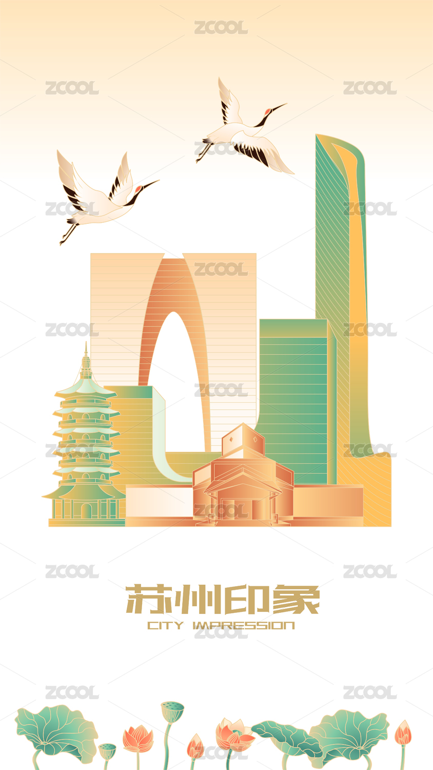 国风,城市,建筑,插画,国潮,都市,地标,标志,竖版,经济