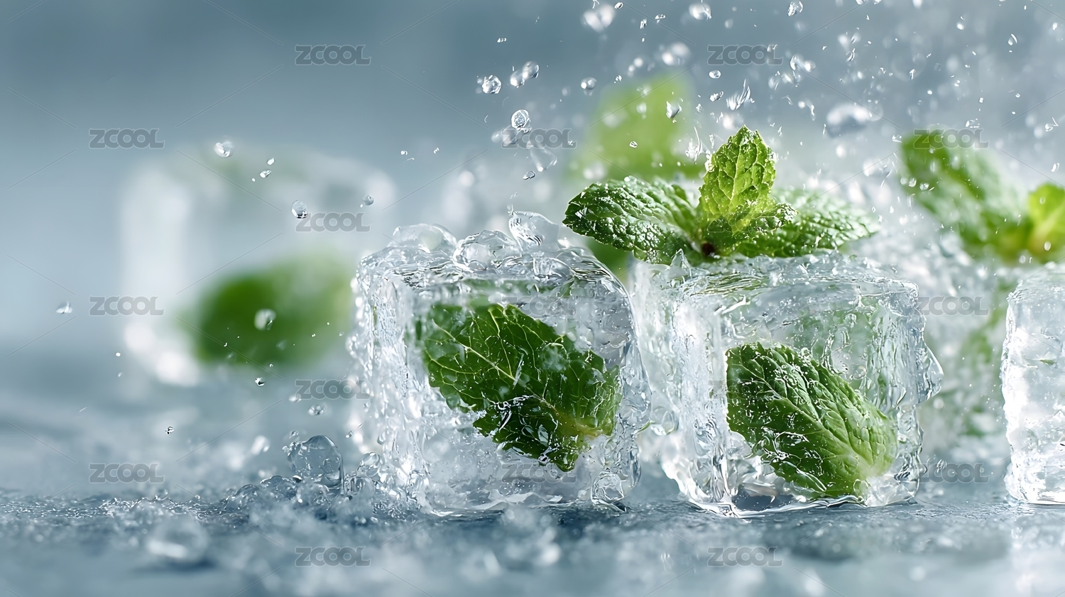 薄荷冰块清凉瞬间