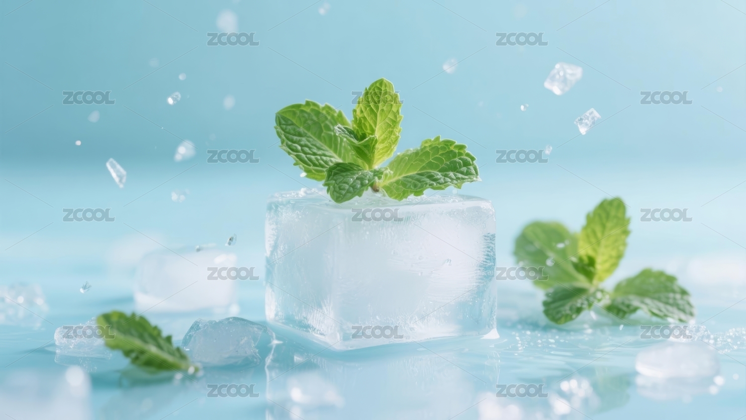 薄荷冰块清凉夏日
