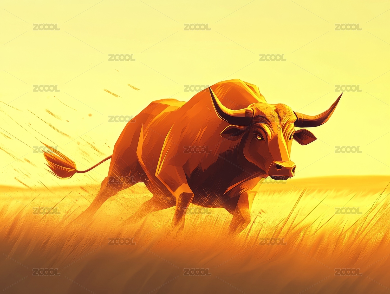 非洲水牛夕阳油画鸿运当头风景画油画动物与风景油画