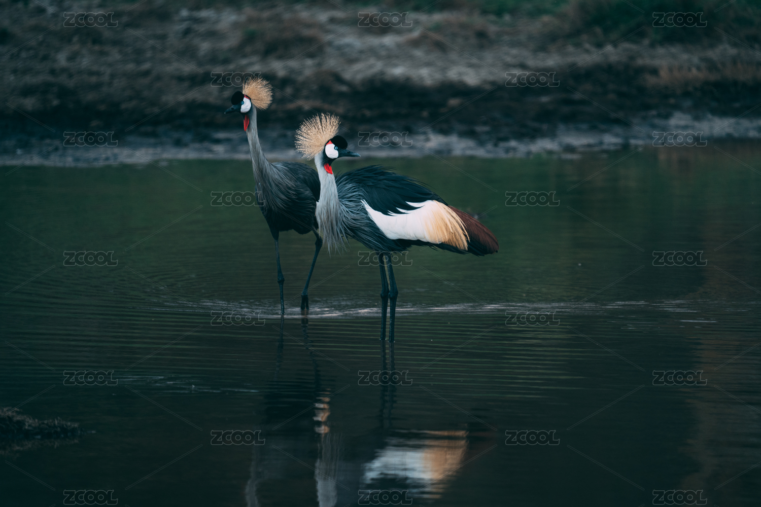 丹顶鹤戏水图