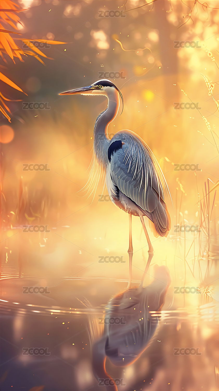 水墨风河边的鹤