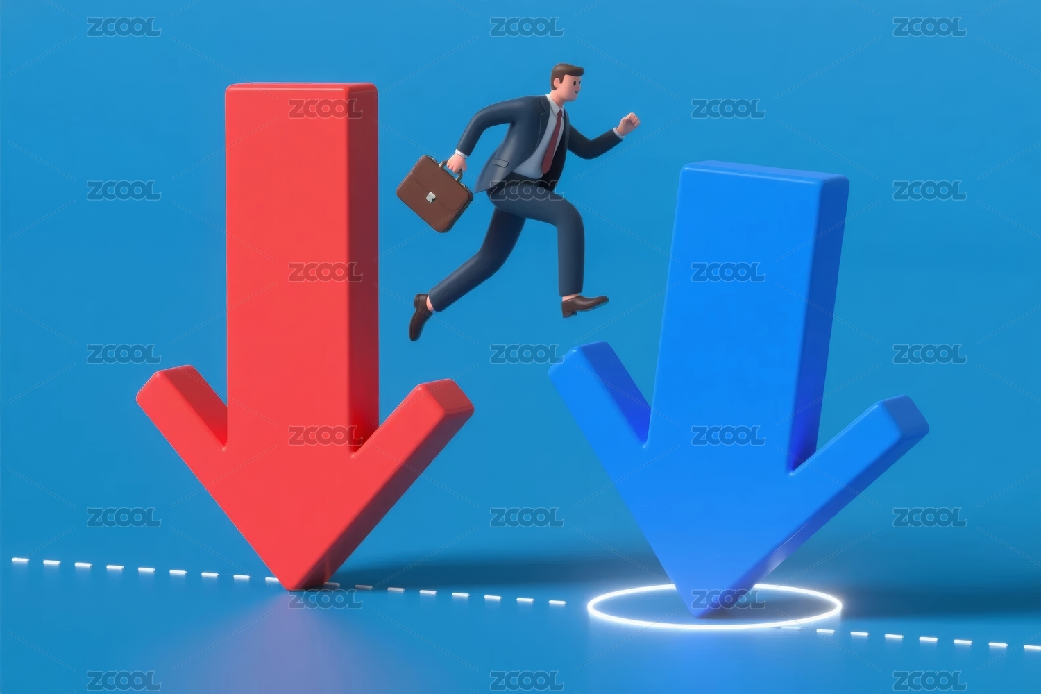蓝色箭头和西装人士