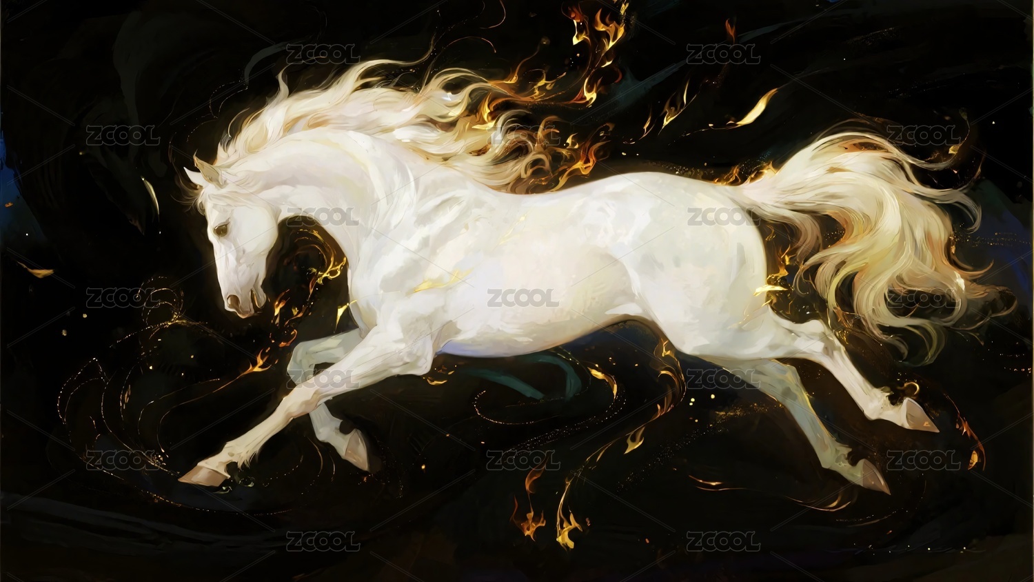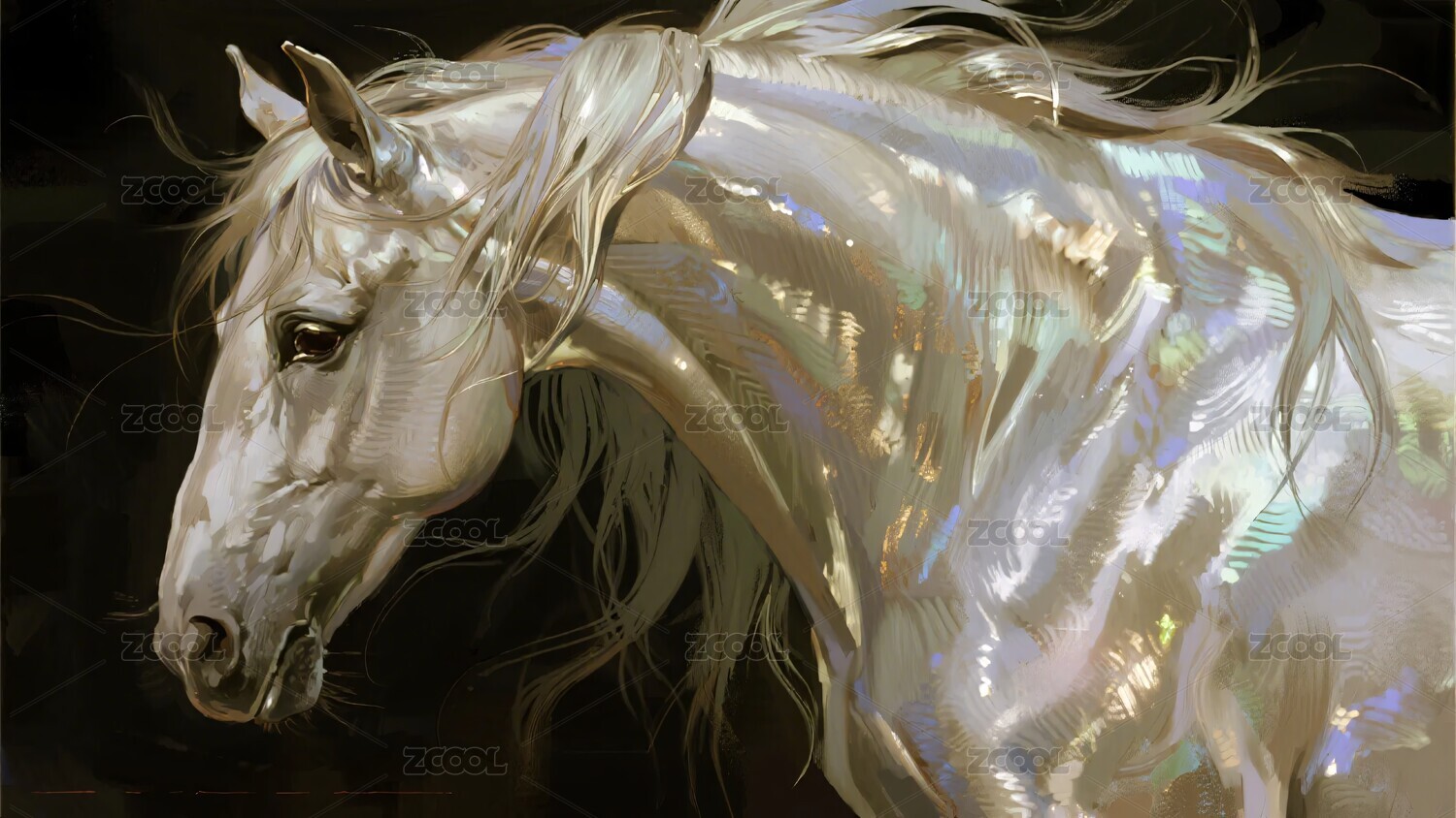 白马,插画,白毛,飘逸,动物,画面主体,唯美,艺术,矢量,形象