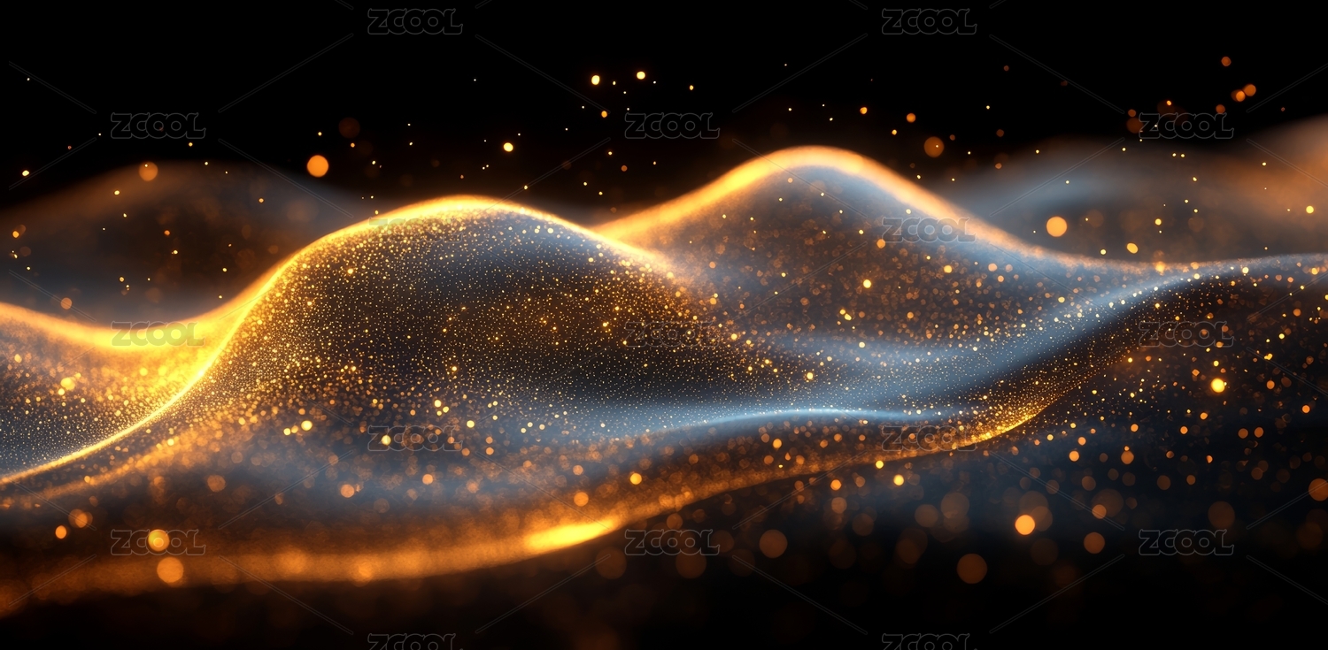 金色,波浪,光影,流动,粒子,星点,梦幻,抽象,背景,闪烁