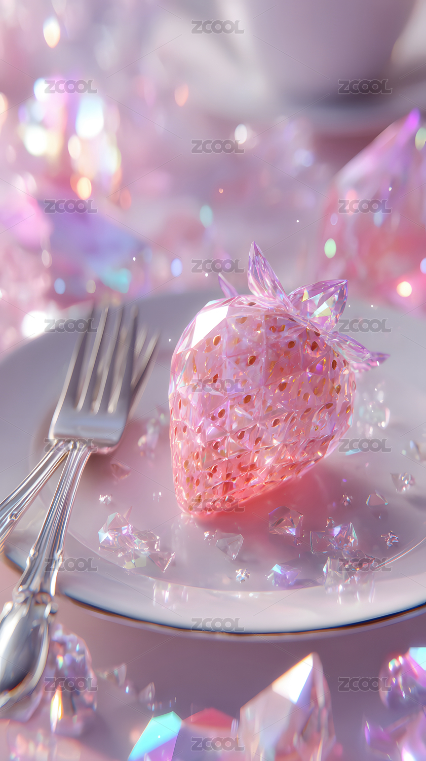 粉色,梦幻,光影,壁纸,质感,唯美,草莓,水晶,宝石,餐具