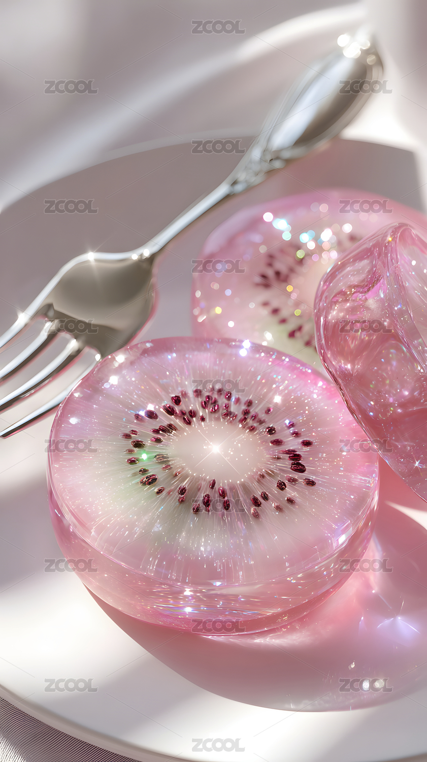 梦幻,光影,壁纸,粉色,奇异果,水晶,宝石,唯美,餐盘,餐具
