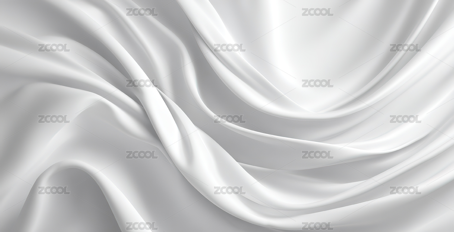白色丝绸褶皱在浅灰背景上呈现柔和极简艺术