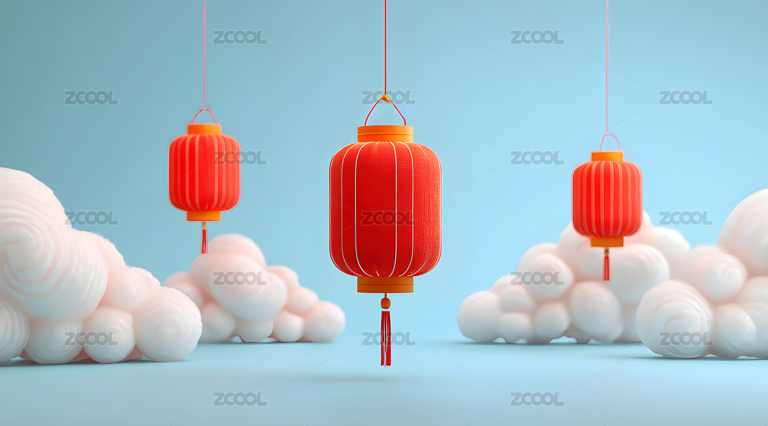金色,3D,背景,简约,中式,云朵,装饰,传统,节日,灯笼