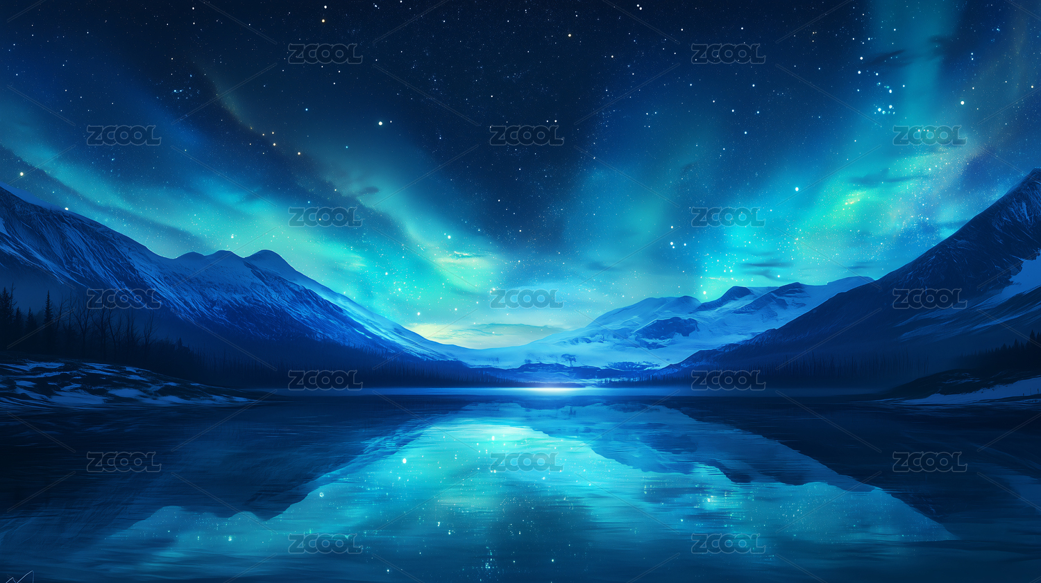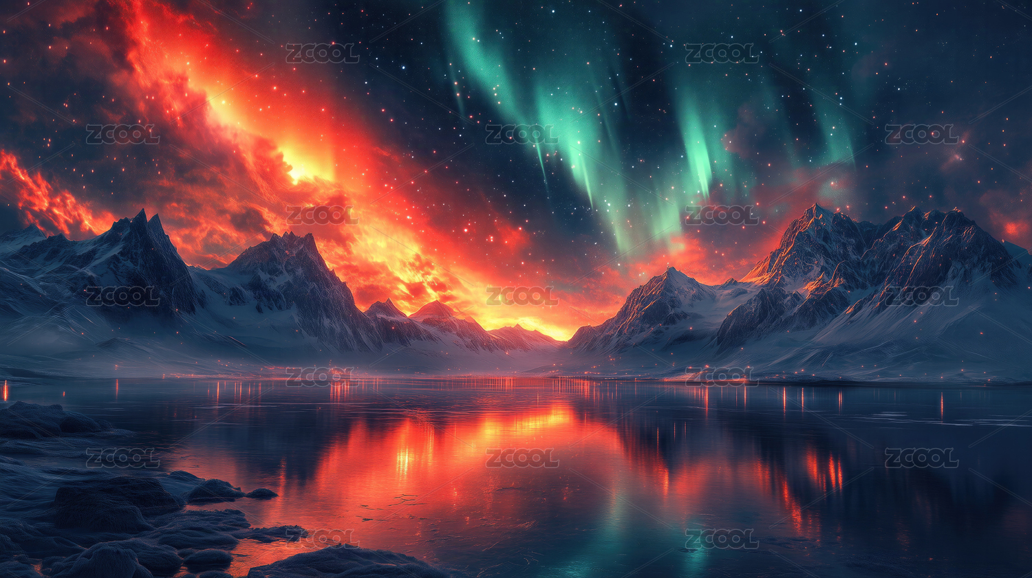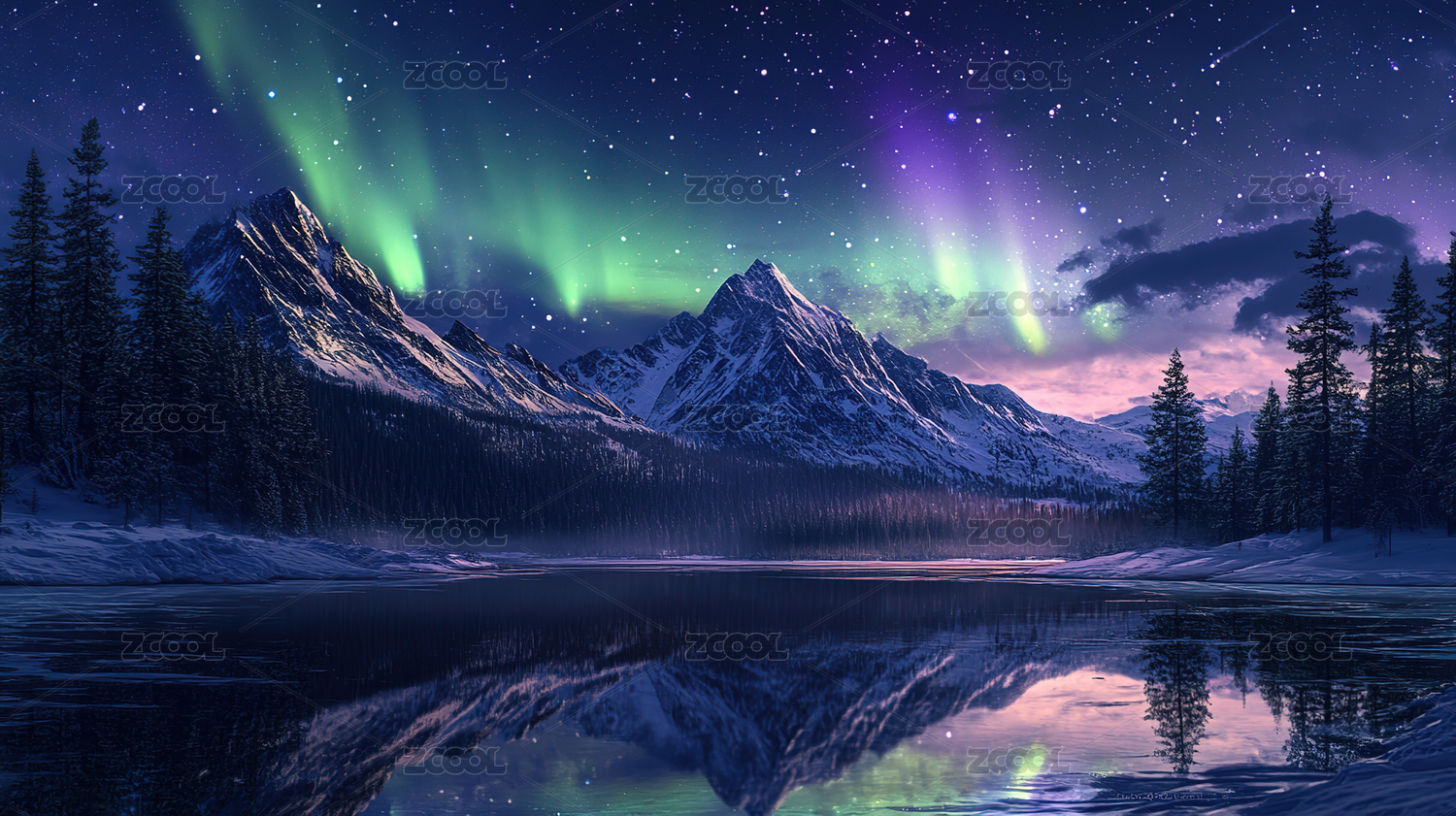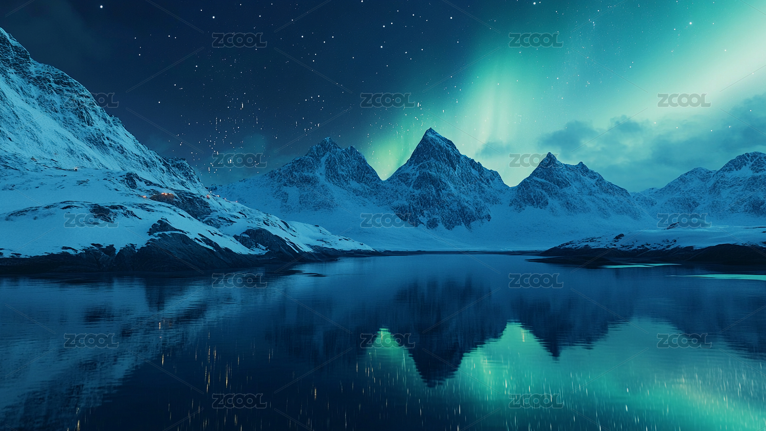 背景,壁纸,风景,夜景,雪山,极光,湖泊,水面,反射,风光